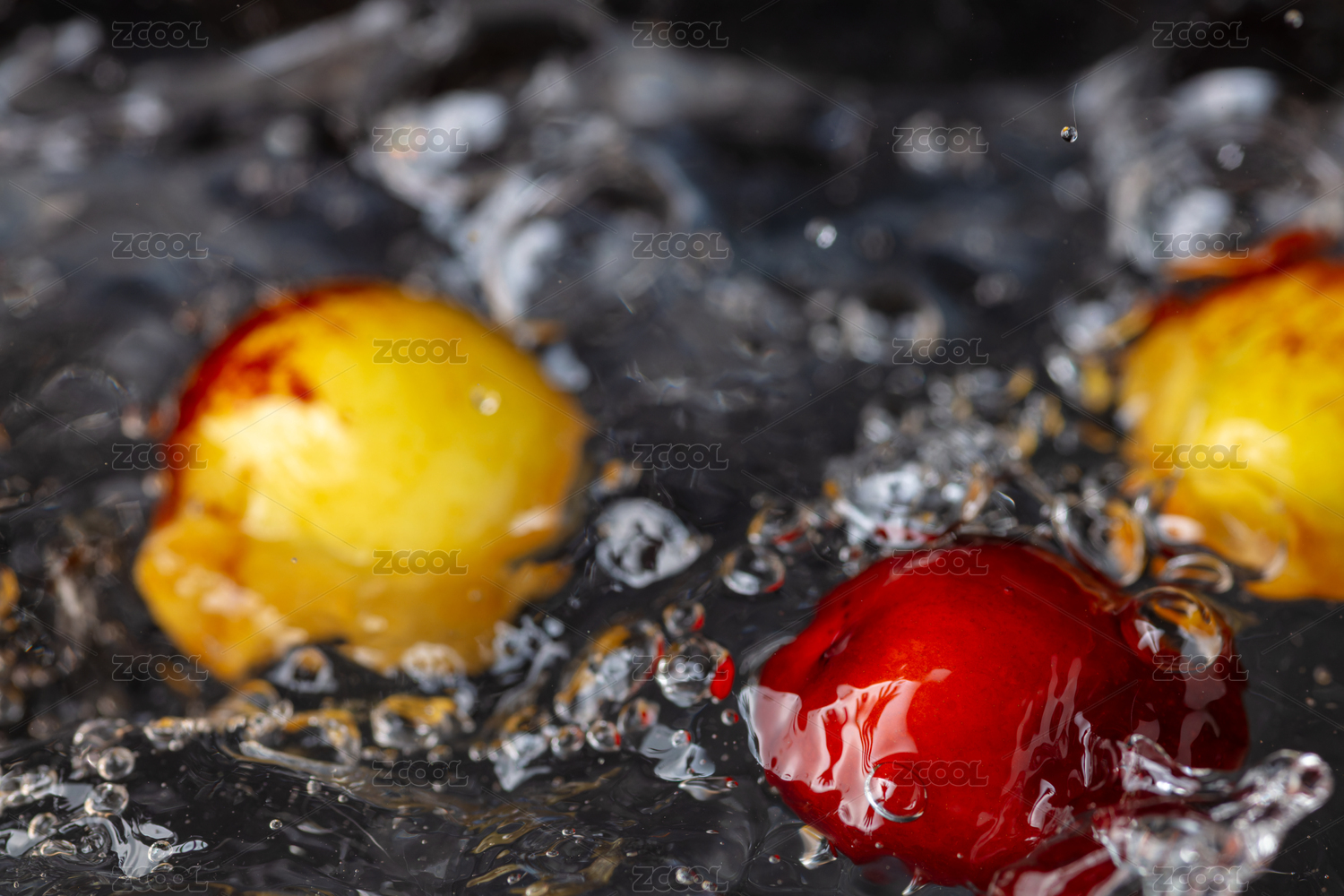 冬枣,水果,新鲜,红黄色,水珠,光泽,饱满,圆润,果实,特写