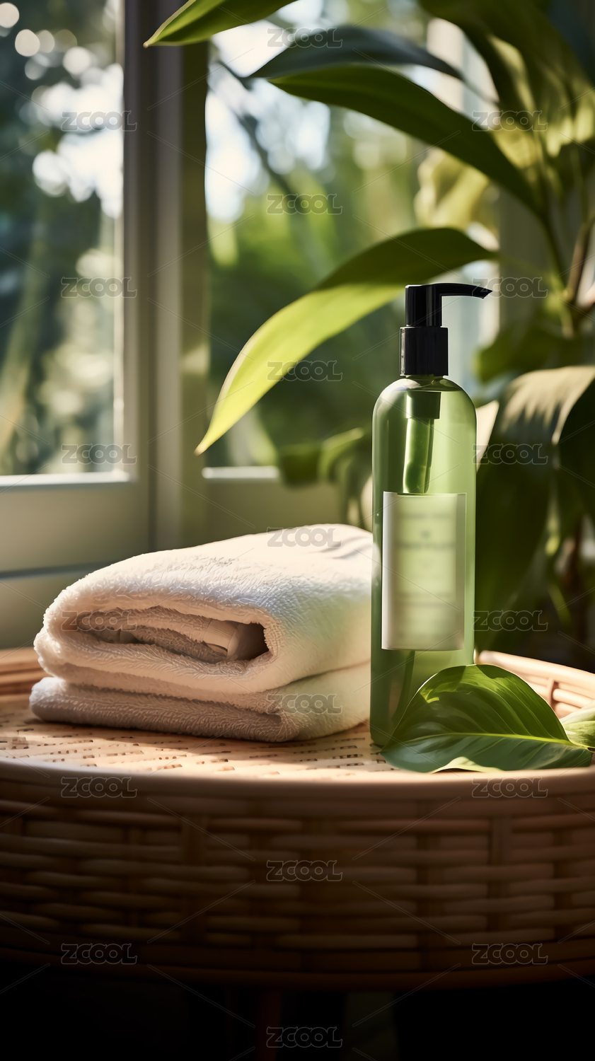 现代浴室一角铺着白色瓷砖摆放着毛巾和香皂