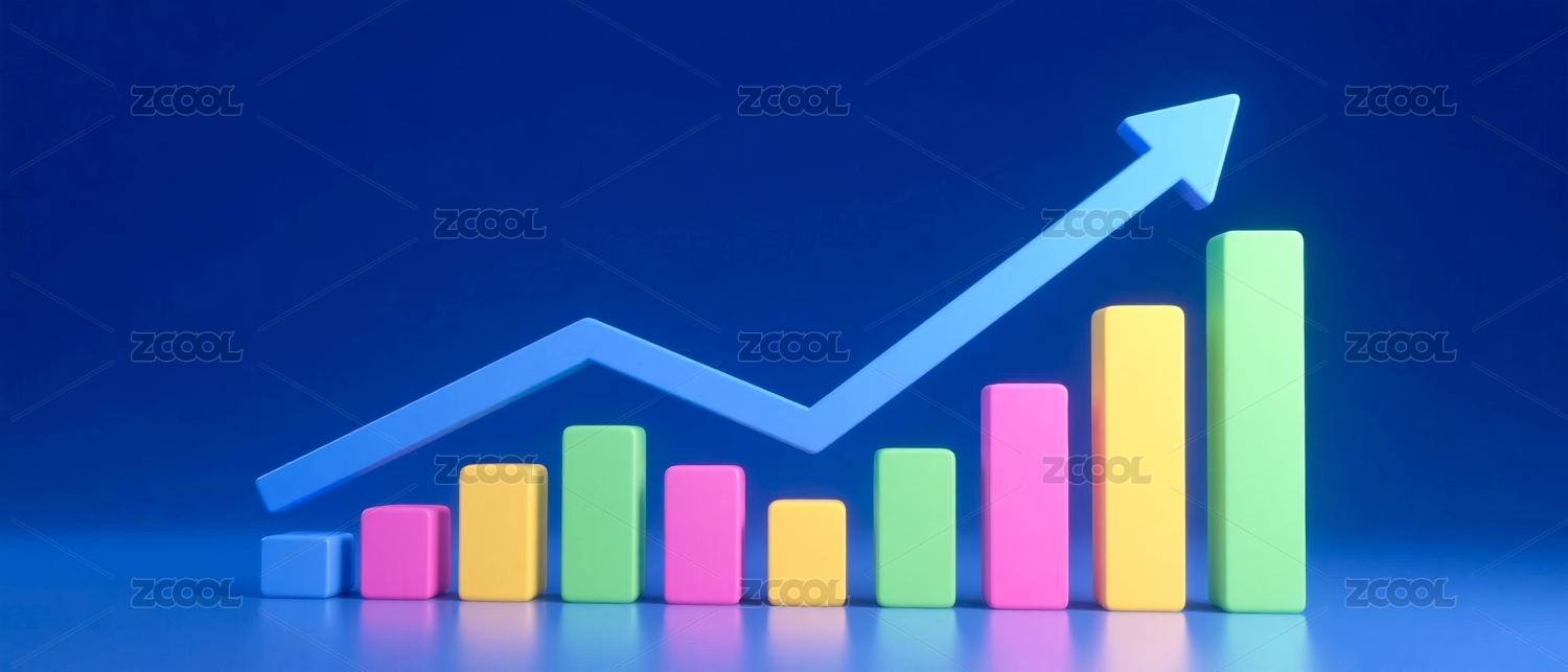 蓝金色渐变玻璃质感金融柱状图增长箭头背景