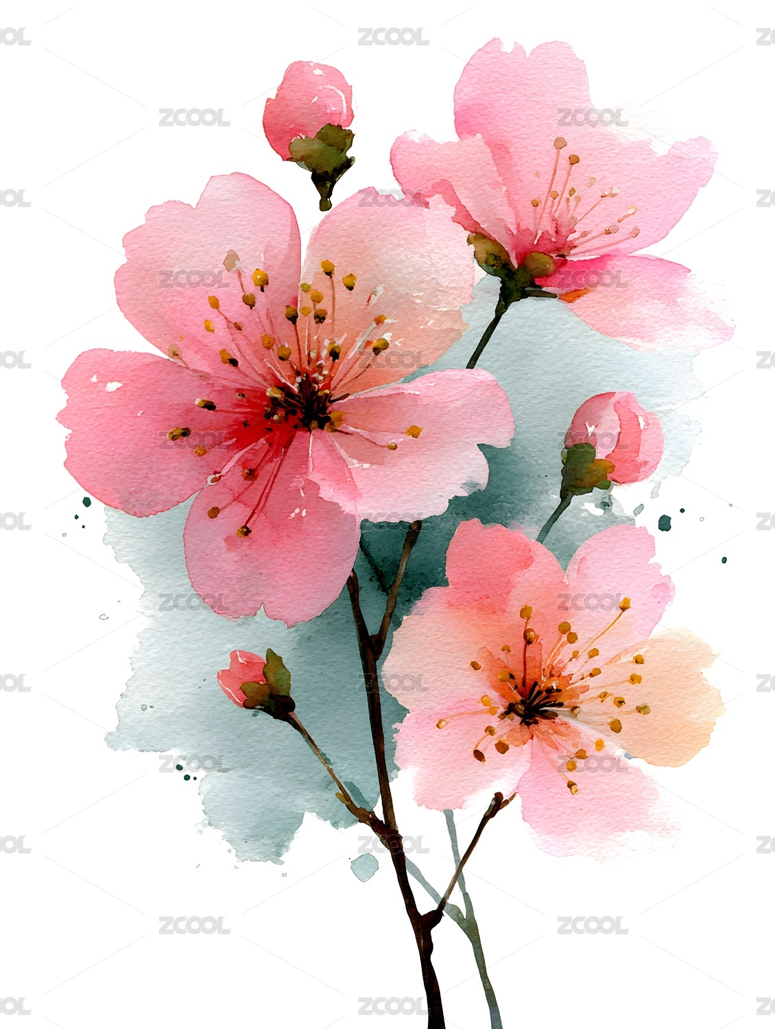 绿色,花朵,粉色,花蕊,叶子,枝条,花瓣,花苞,盛开,花枝