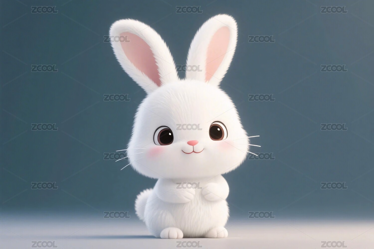 可爱白色兔子毛绒玩具,简单背景下的盲盒