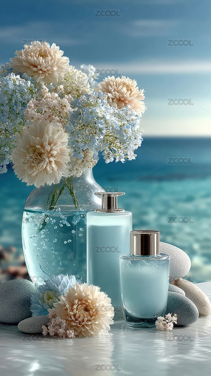绿色,叶子,蓝色,背景,植物,花朵,海洋,天空,白色,浪花