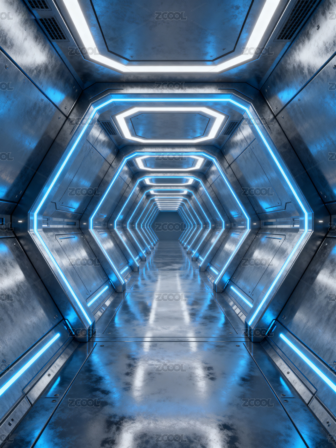 科幻风格蓝色隧道空间