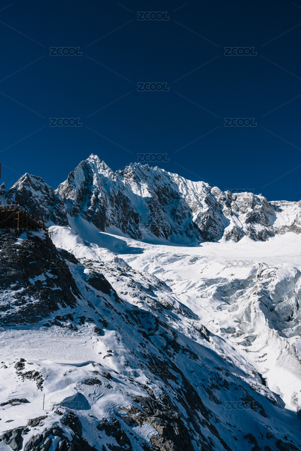 航拍云南丽江玉龙雪山主峰扇子陡冰川公园