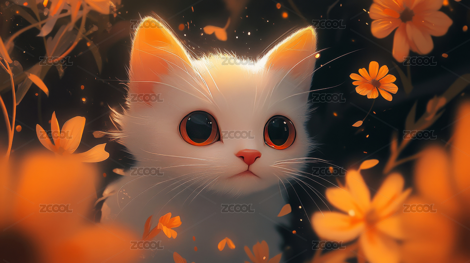 花丛中的金色猫咪