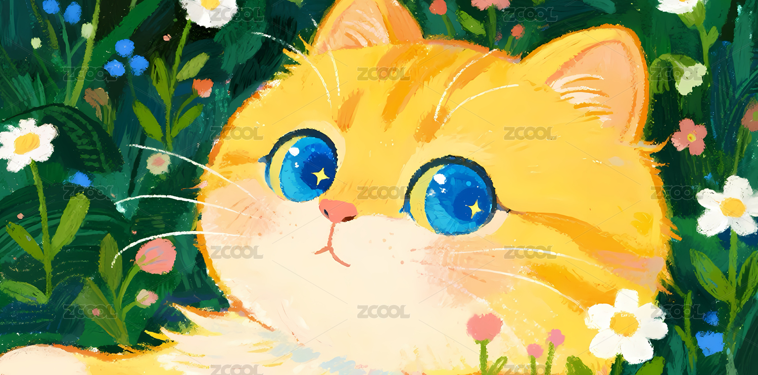 花丛中的可爱猫咪插画