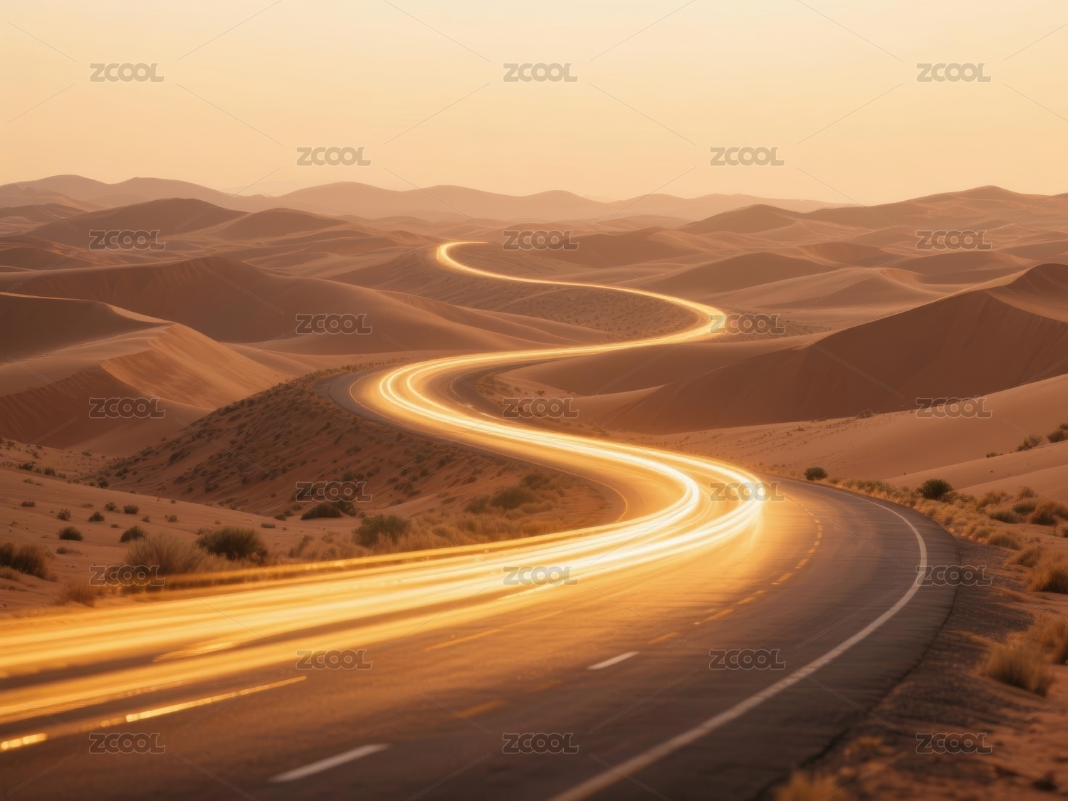 沙漠公路暖色调风光场景