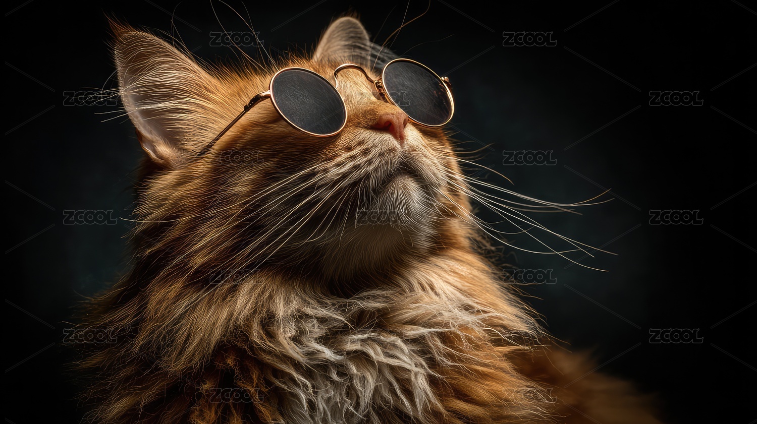 戴太阳镜的橘猫,表情顽皮,毛发纹理细腻