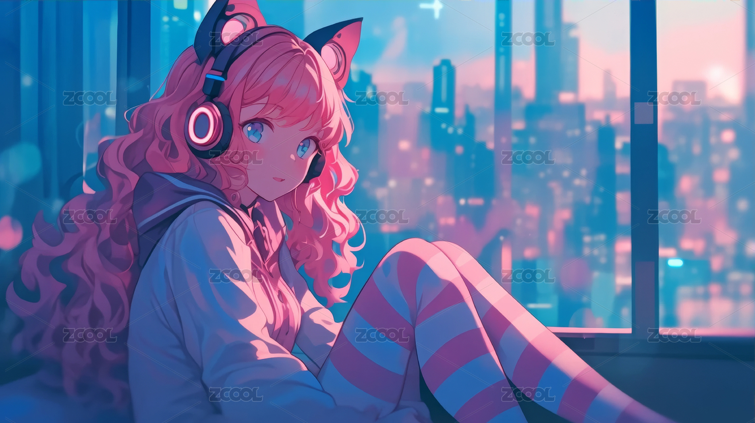 粉色,动漫,女孩,梦幻,可爱,双马尾,发饰,眼睛,大眼,表情