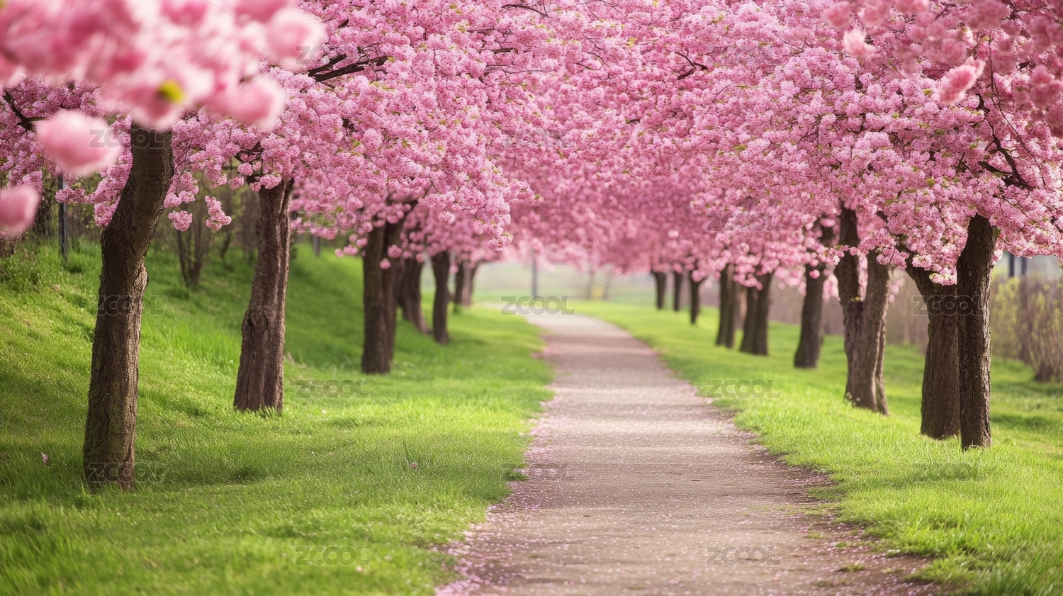 粉红樱花隧道