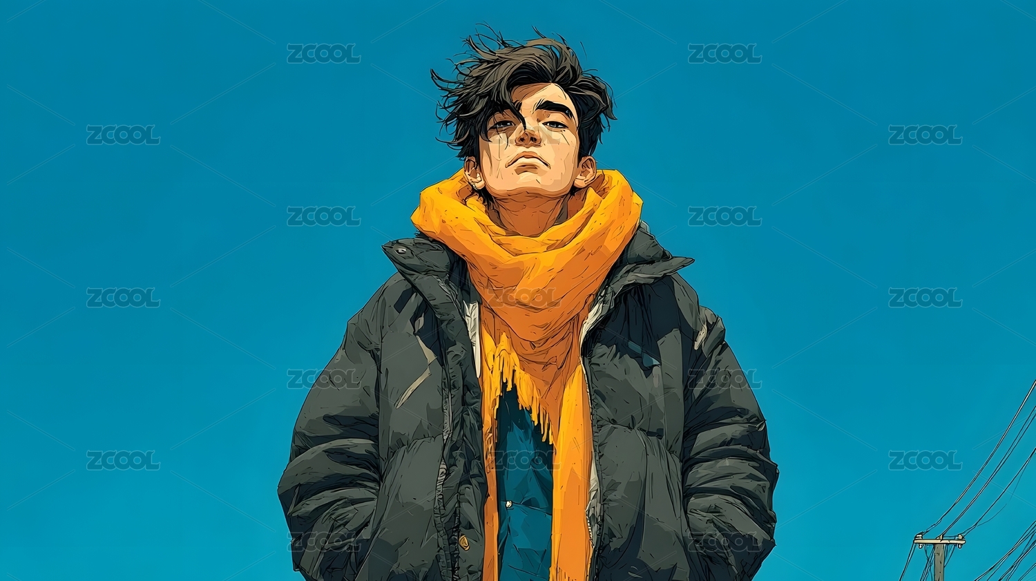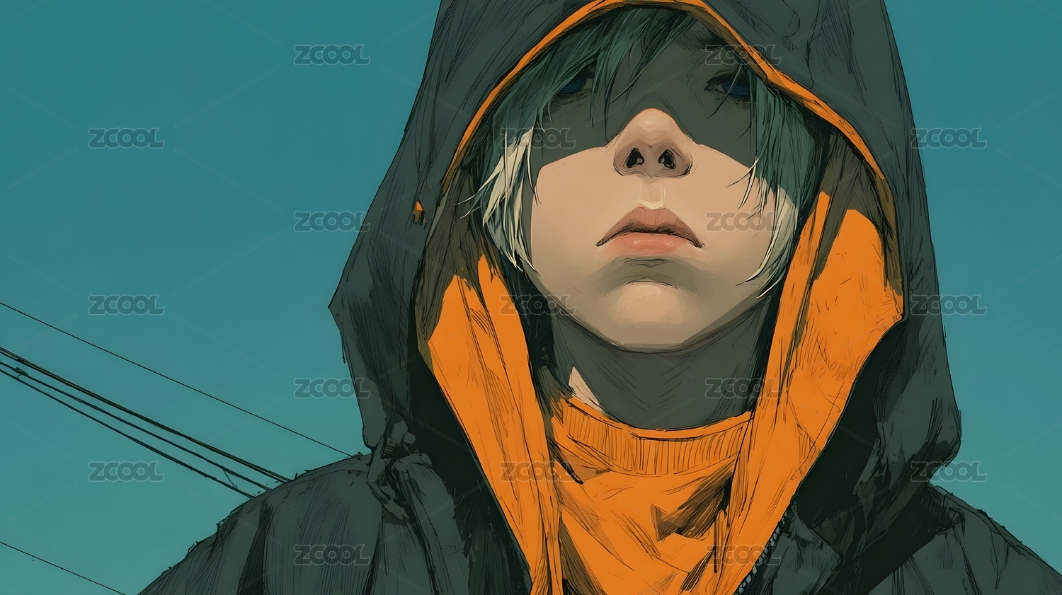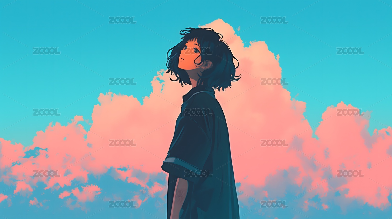 设计,现代,艺术,背景,蓝色,人物,天空,风格,橙色,黑色