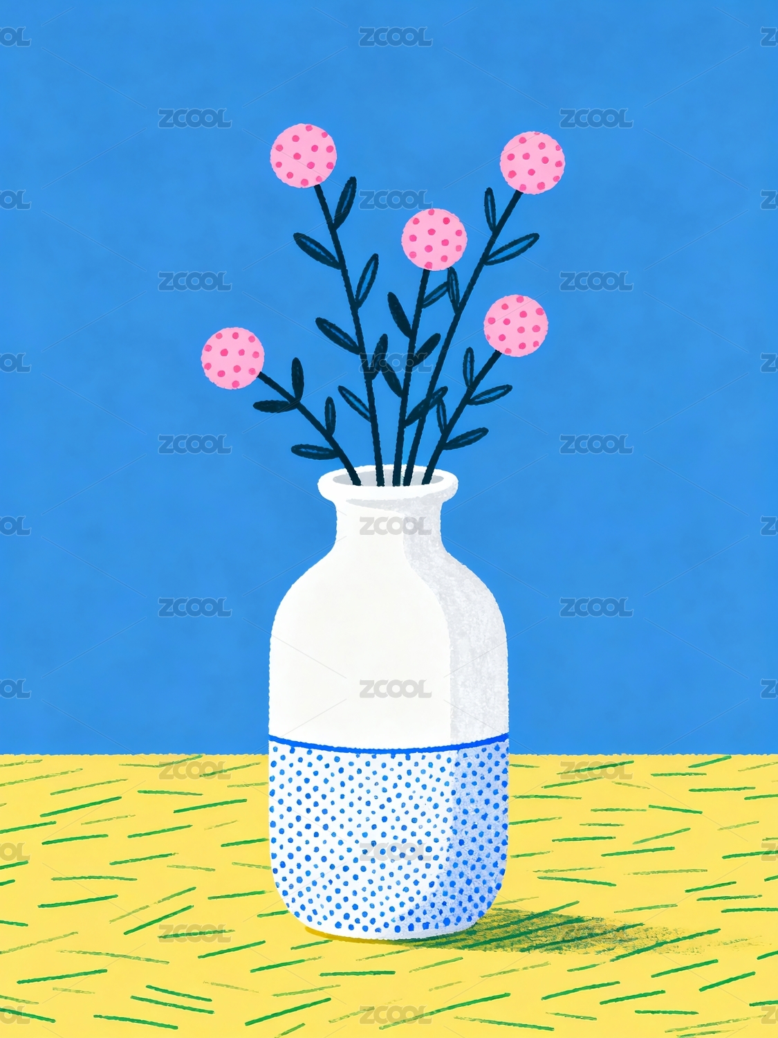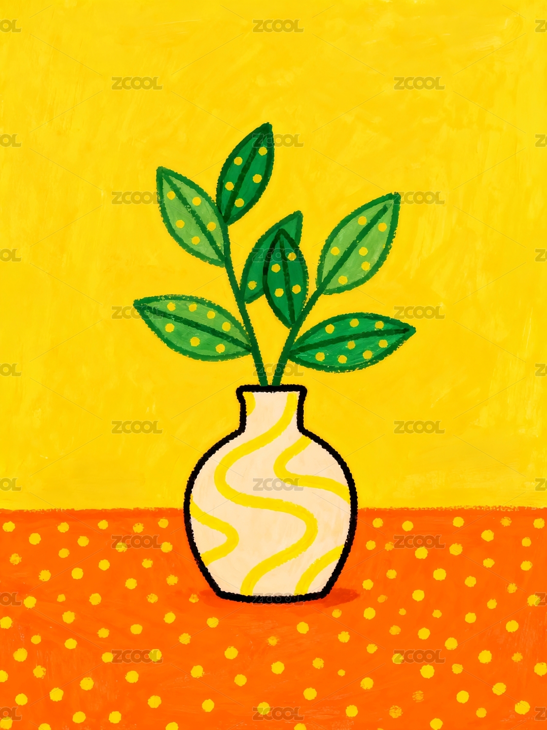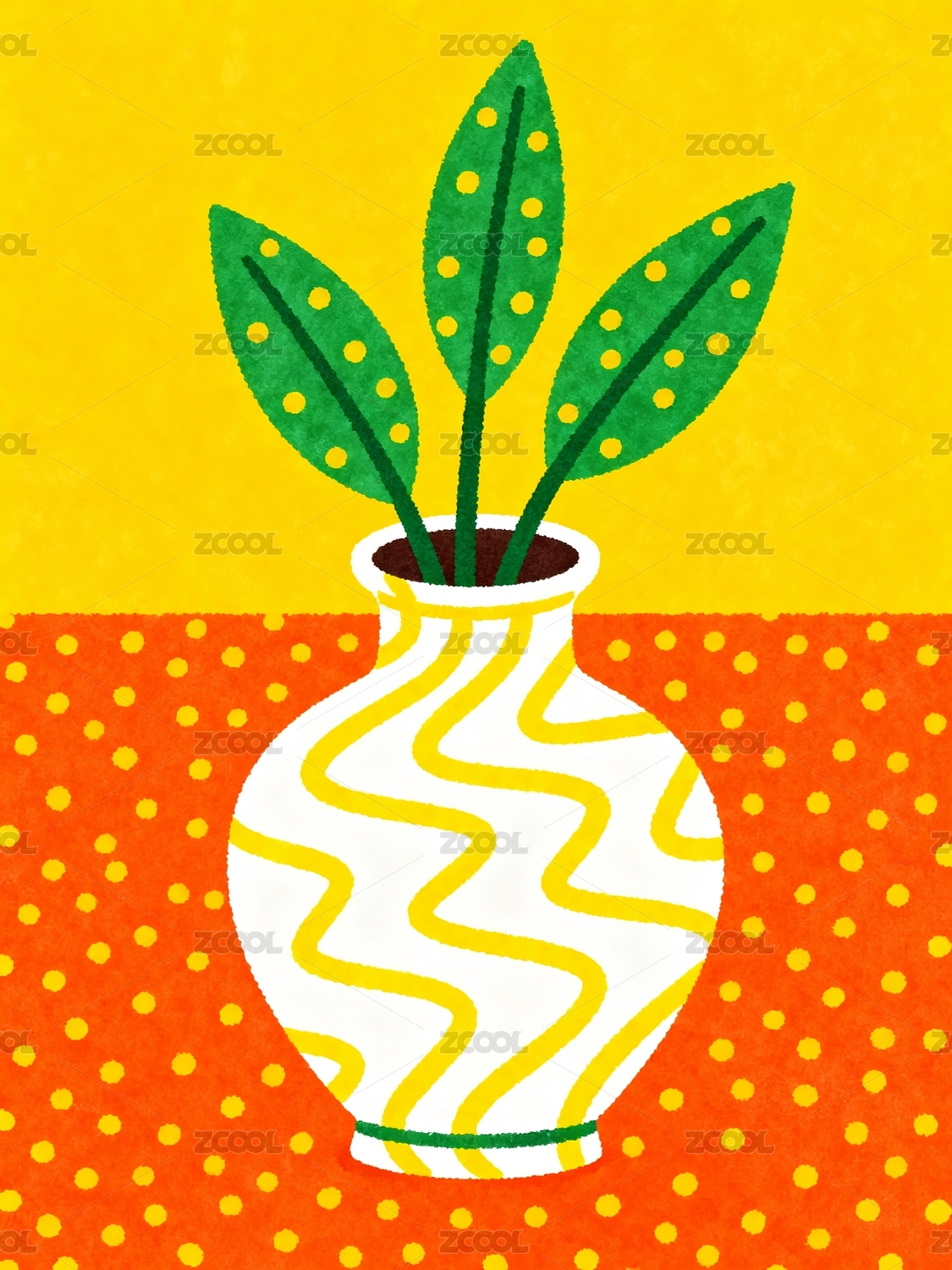 黄色,绿色,枝干,桌面,几何,图案,装饰,明亮,摆件,室内