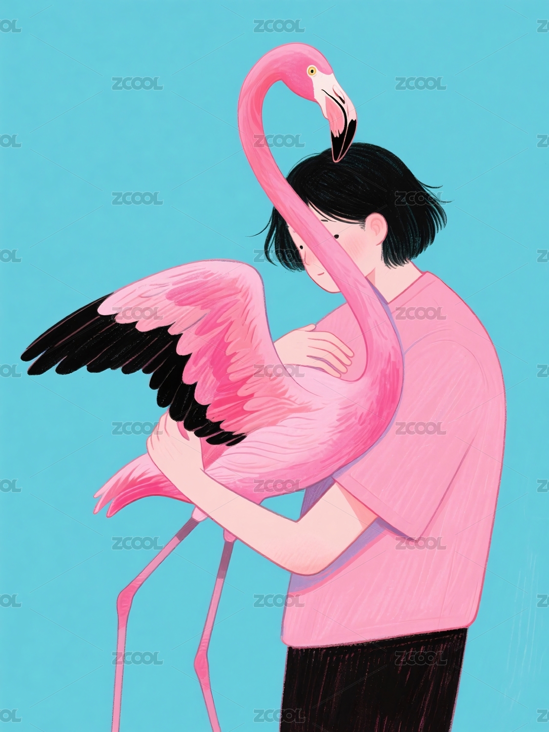 蓝色,羽毛,粉色,卡通,可爱,人物,故事,头部,天空,身体