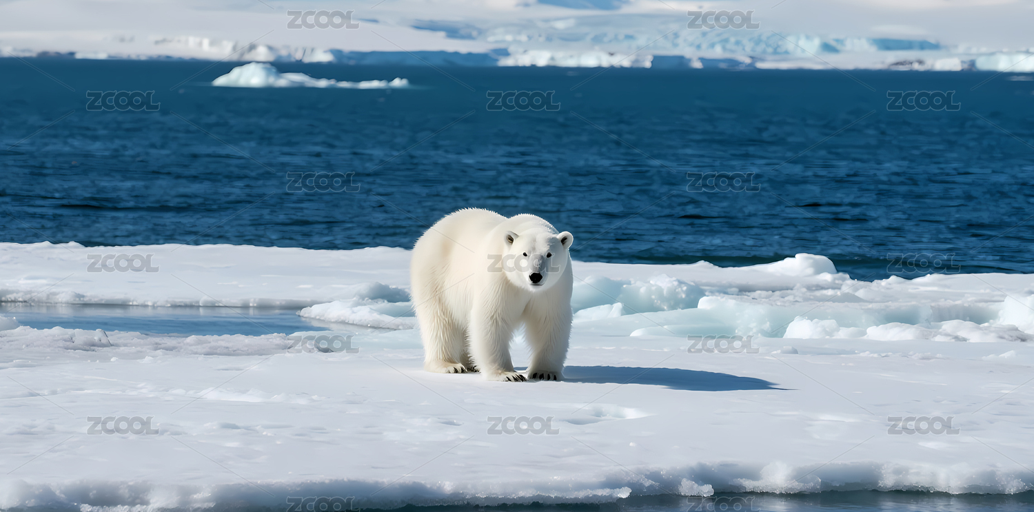北极熊站在冰面上