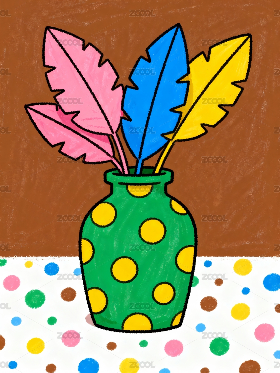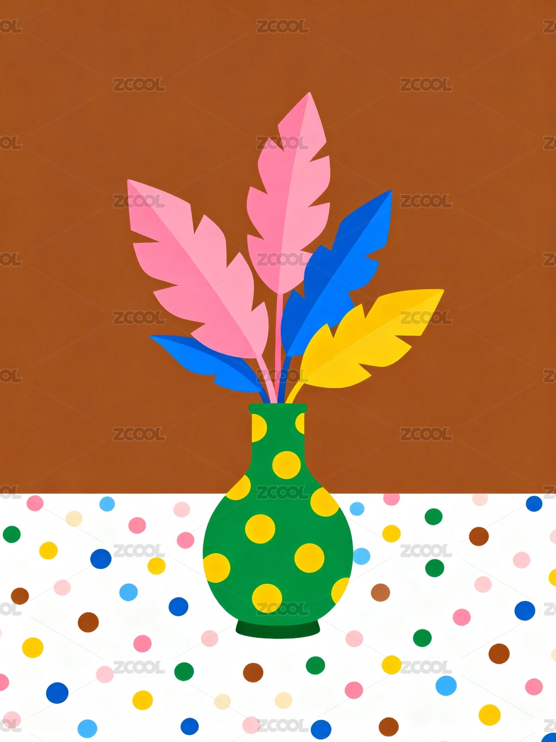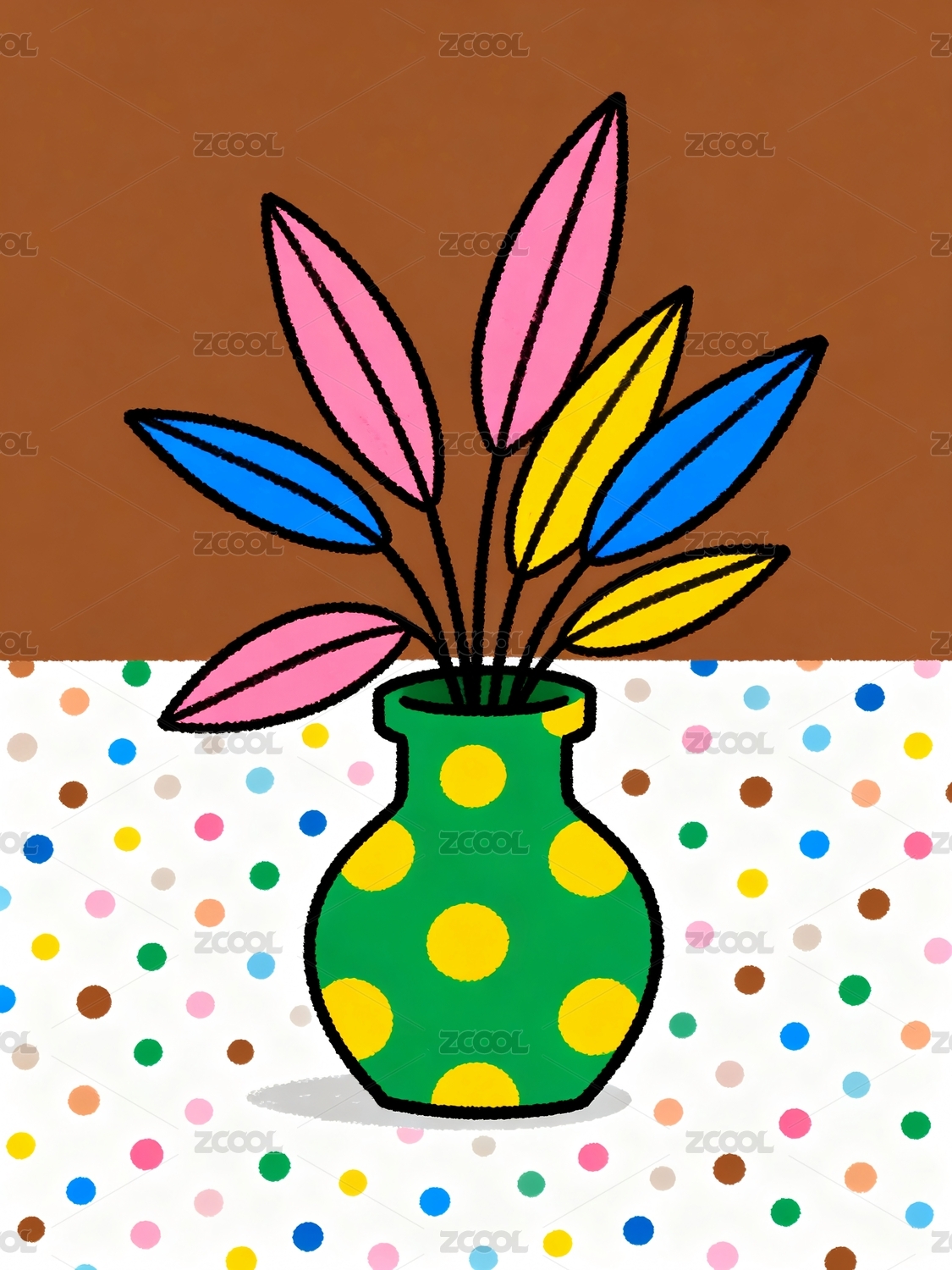 花瓶,植物,绿色,蓝色,黄色,插画,简单,图案,构成,风格