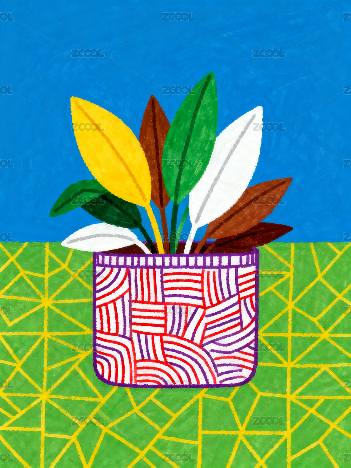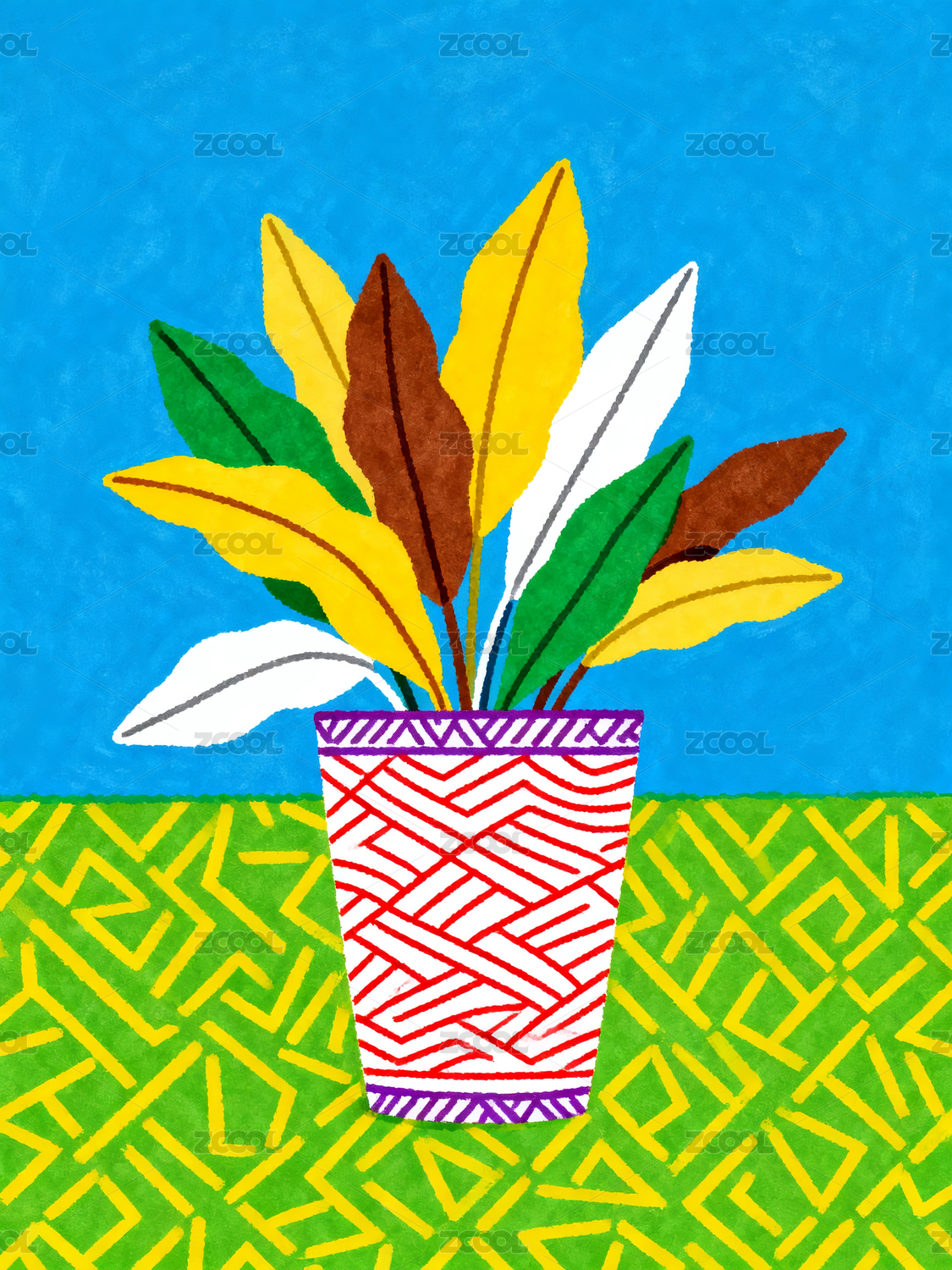 花瓶,植物,绿色,黄色,颜色,盆栽,图案,枝干,纹理,风格