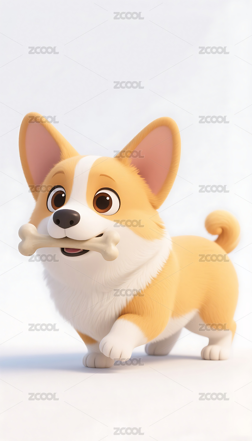 3D柯基小狗插画