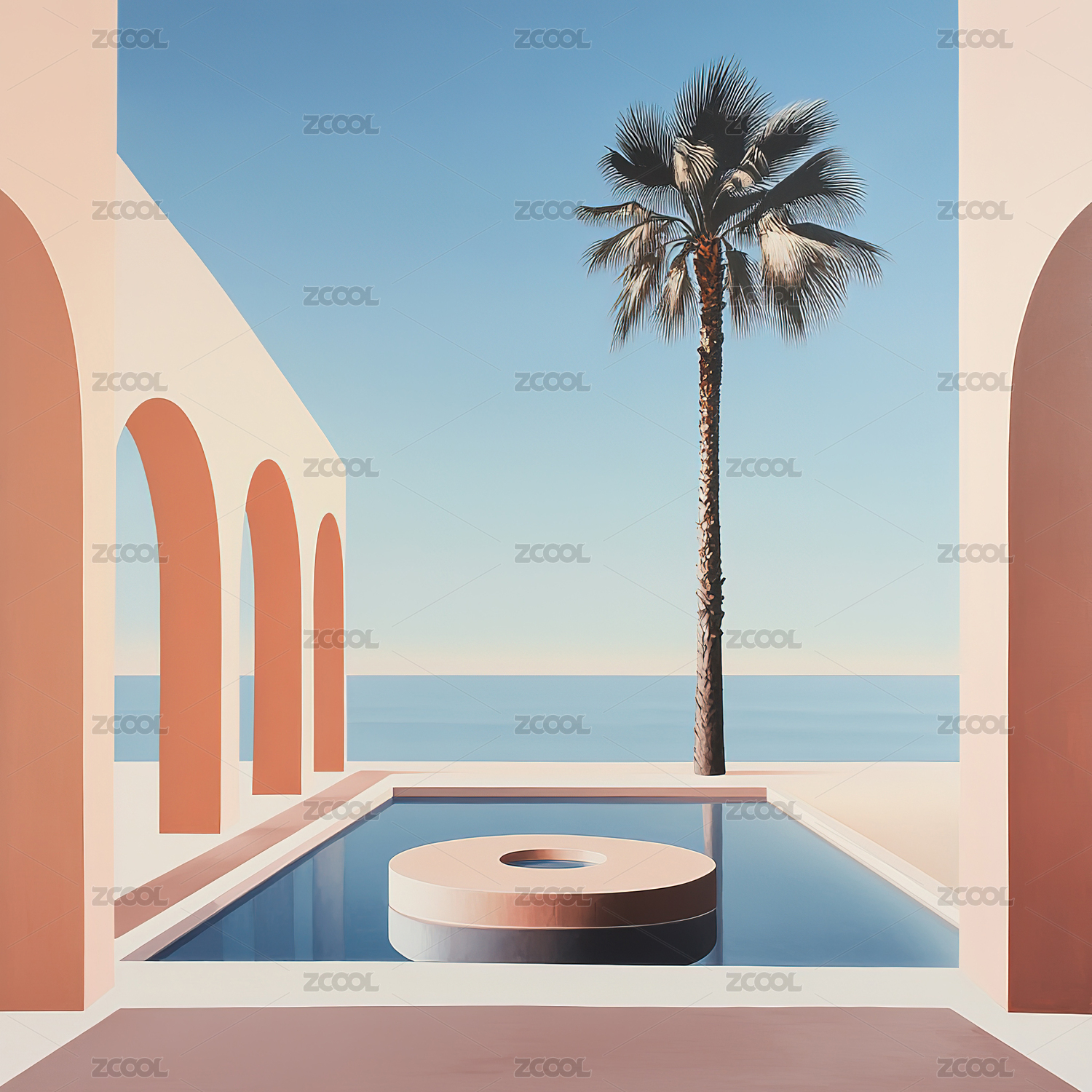彩色拱门泳池边度假风光