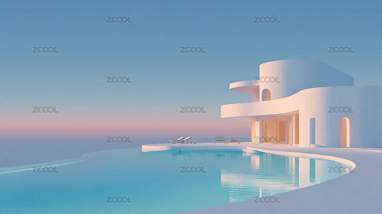 现代泳池与白色建筑