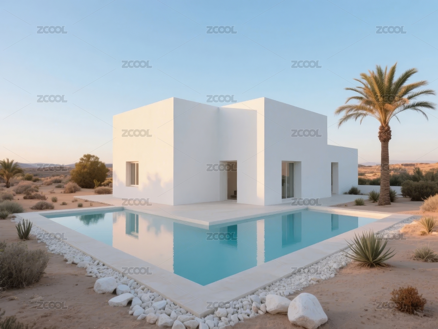 阳光沙漠中的现代简约建筑