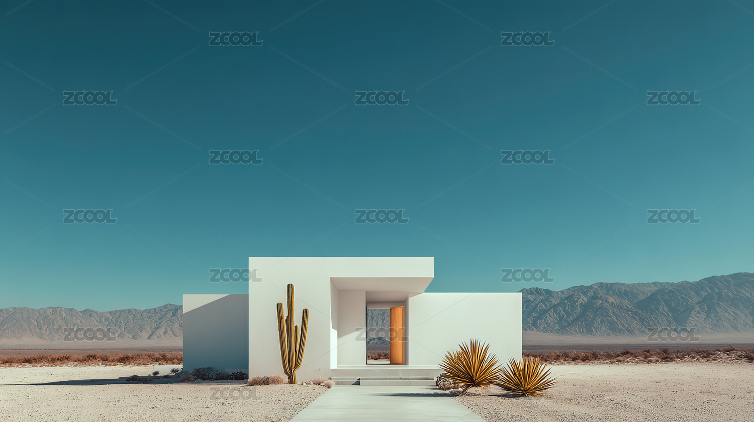 住宅,禅意,极简,结构,白色,单体,砂石,花园,前景,太阳