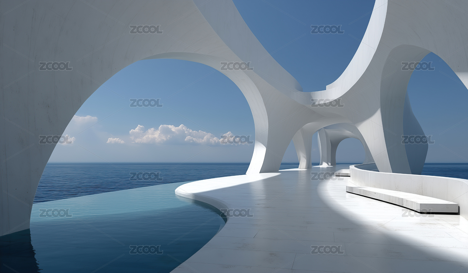 现代,景观,建筑,白色,蓝天,简洁,开阔,设计,结构,户外