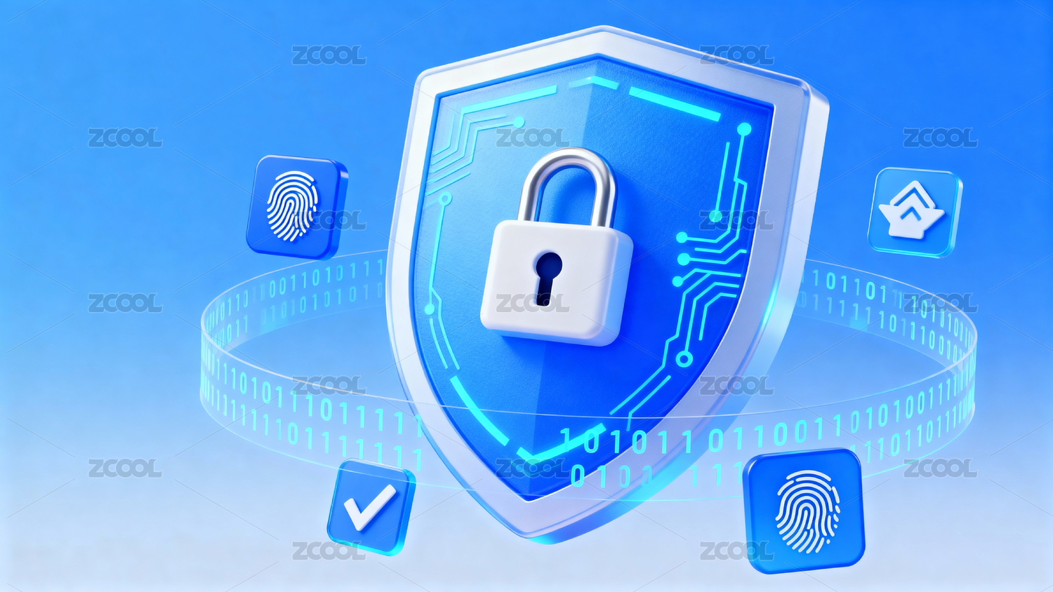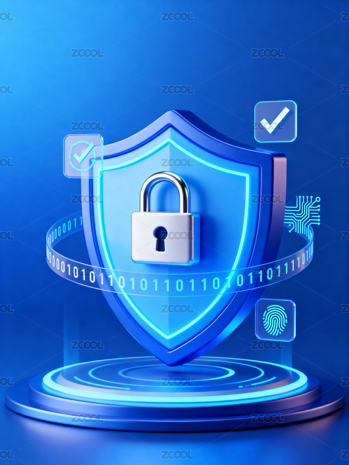 深蓝色科技悬浮半透明数据防护罩盾牌背景