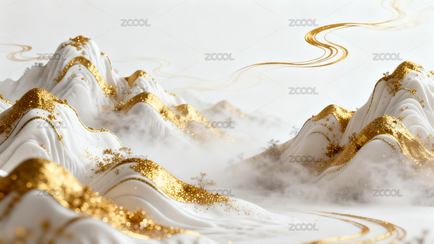 白色,金边,山峦,群山,山脉,远山,山水,3D插画,国风,无人