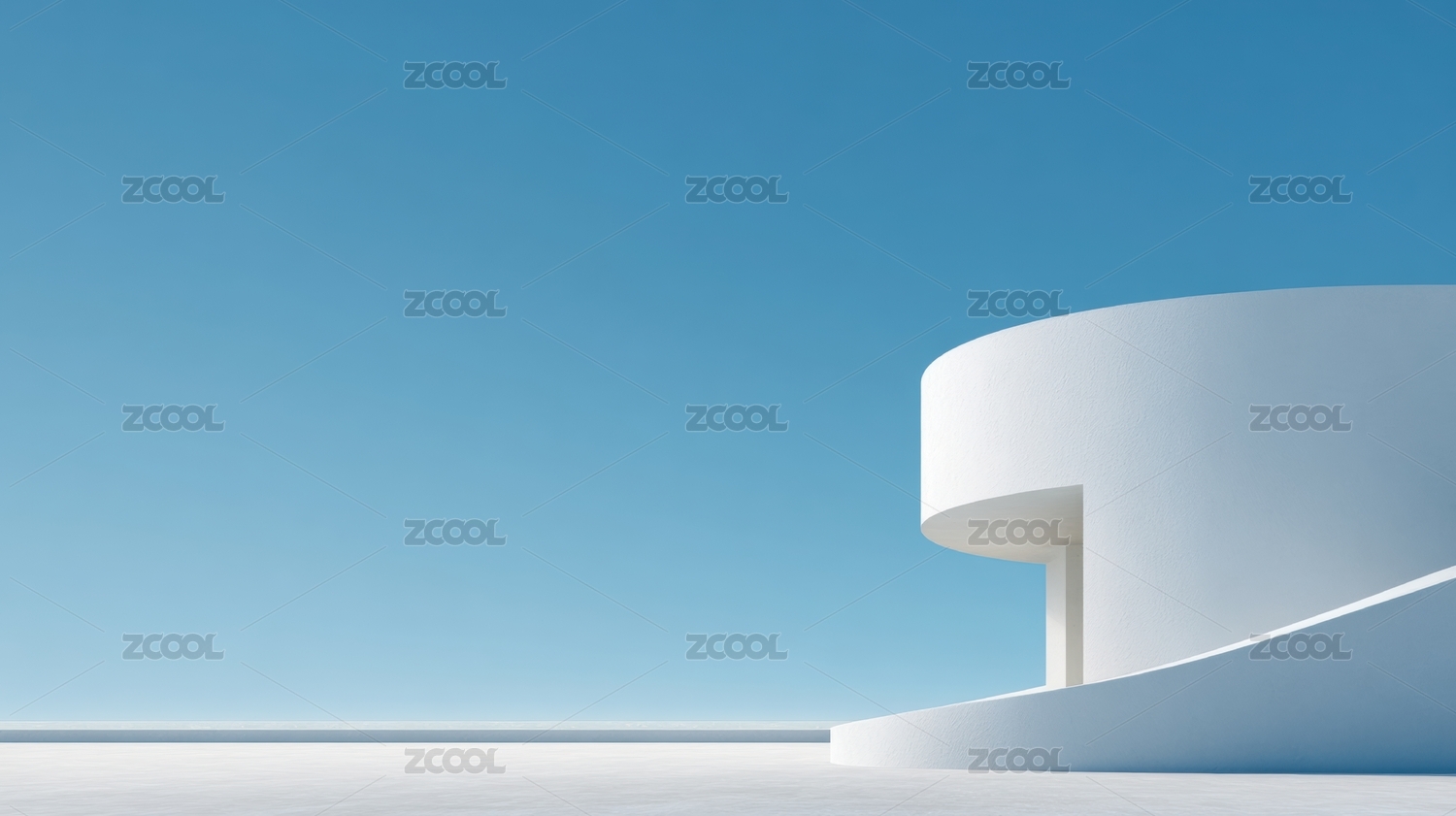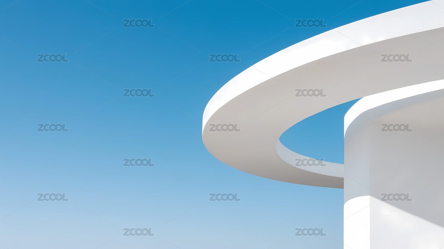 现代极简几何形建筑与蓝天背景图
