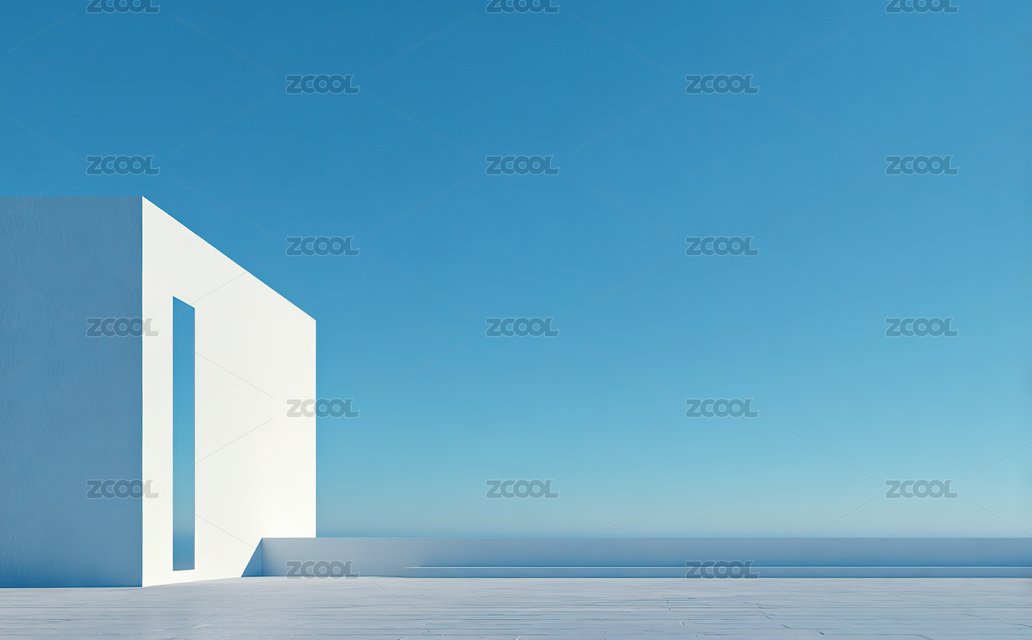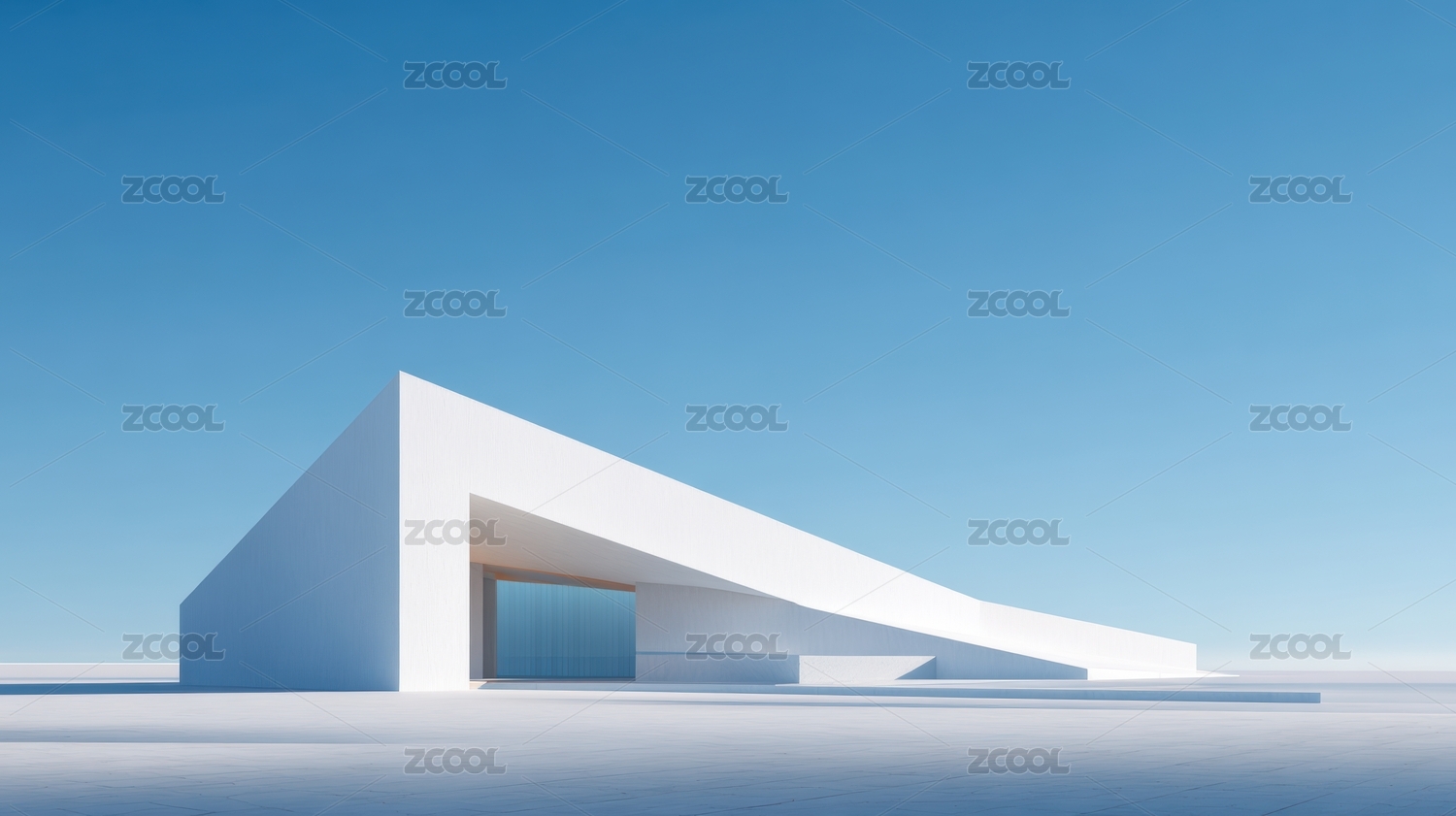 极简主义的白色建筑与蓝天