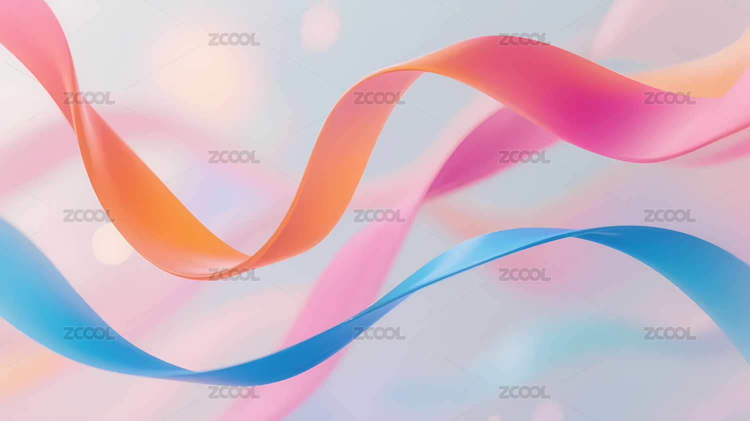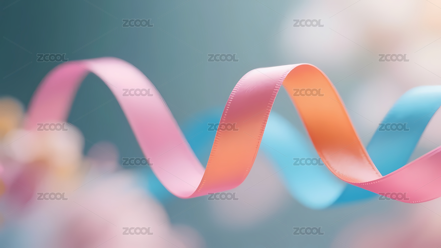粉橙丝带与蓝粉花朵的梦幻氛围