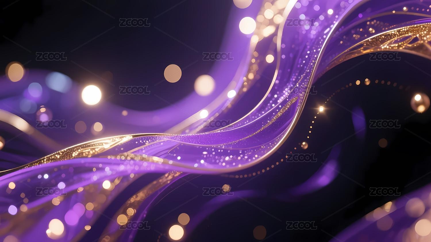 波浪,光点,抽象,艺术,背景,紫色,梦幻,金色,黑色,流动