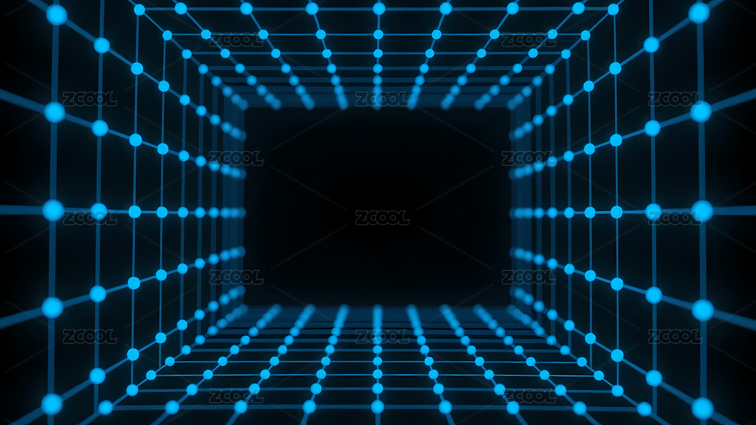 线条,光点,蓝色,科技,未来,视觉,几何,对称,隧道,科学