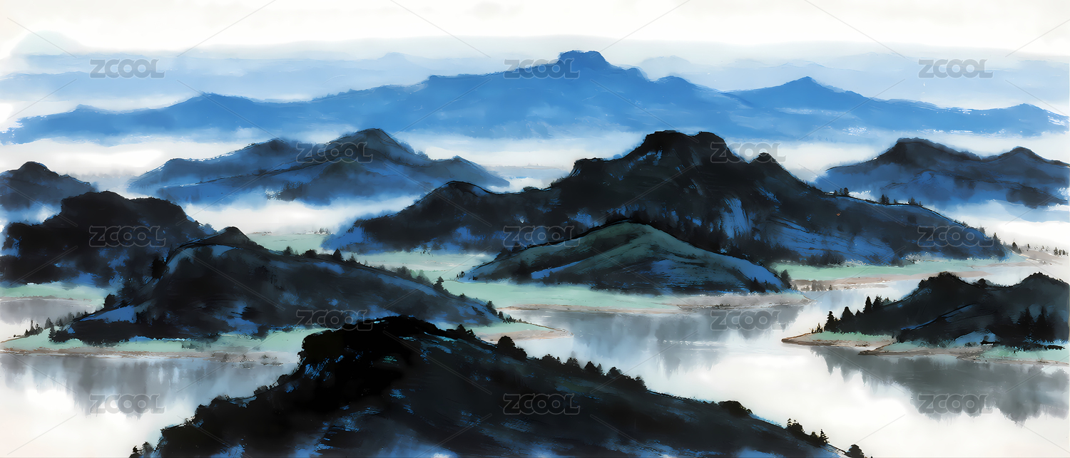 云,背景,远山,水墨,层次,风景,自然,山水,云海,墨色