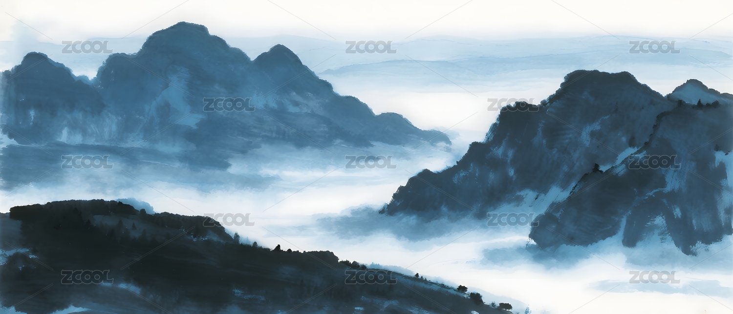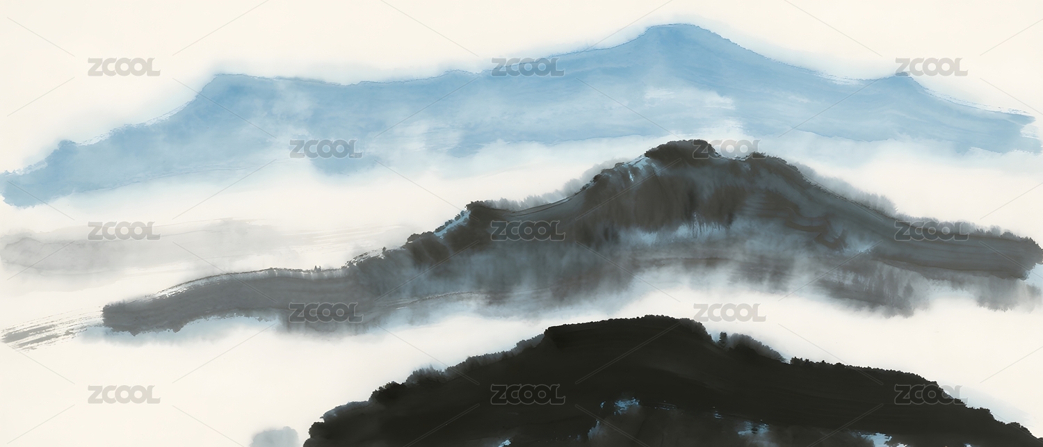 背景,山脉,远山,云雾,水墨,山峦,风景,自然,山水,云海