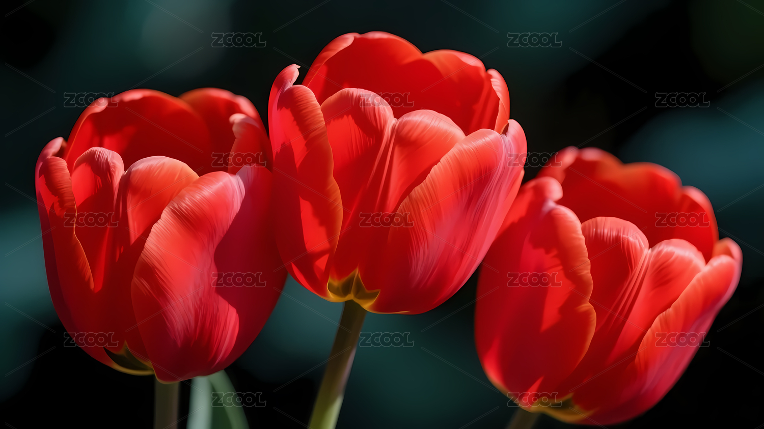 红色郁金香与深灰背景