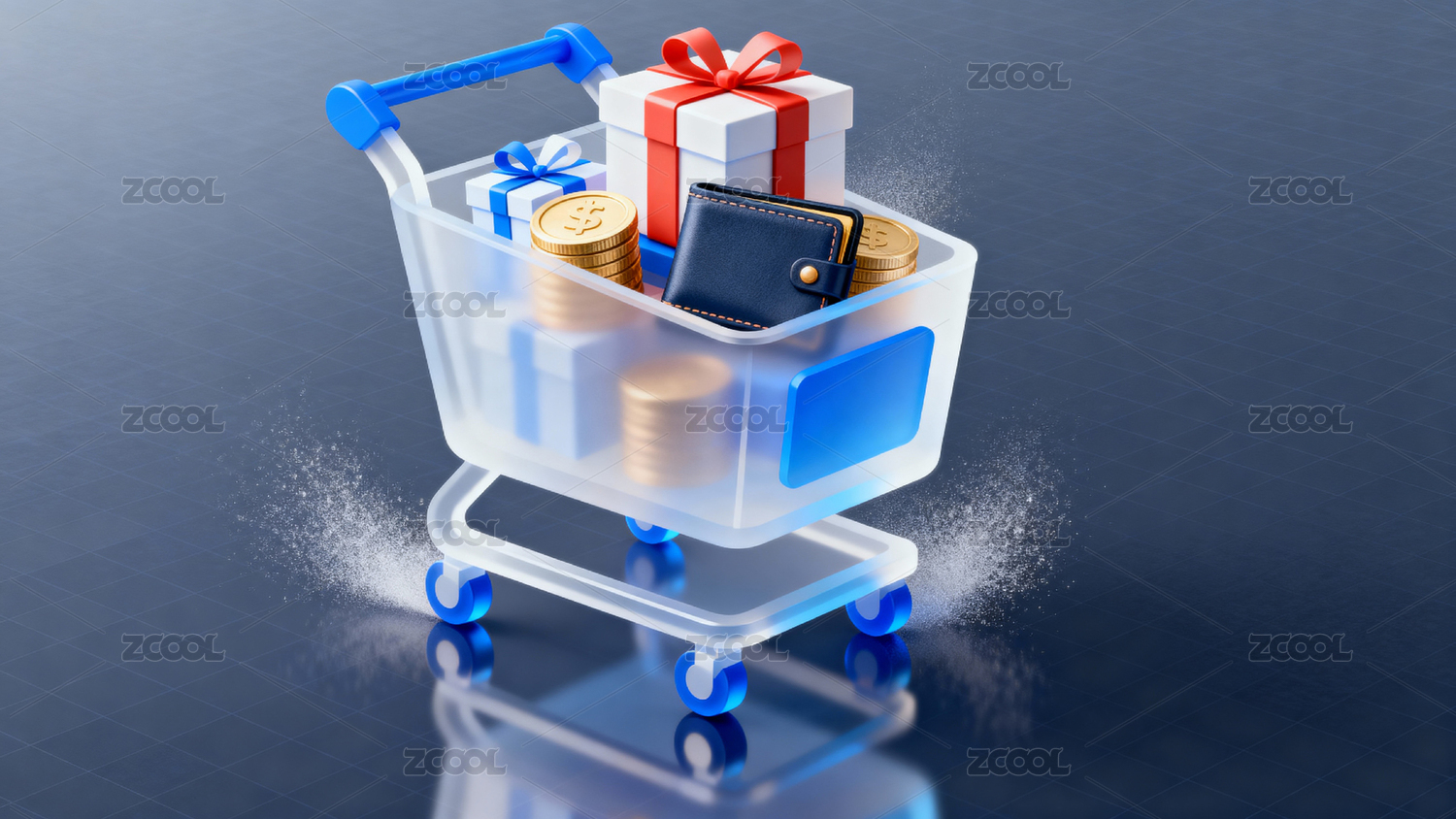 装饰,蓝色,硬币,购物,礼物,购物车,钱包,礼盒,丝带,车轮