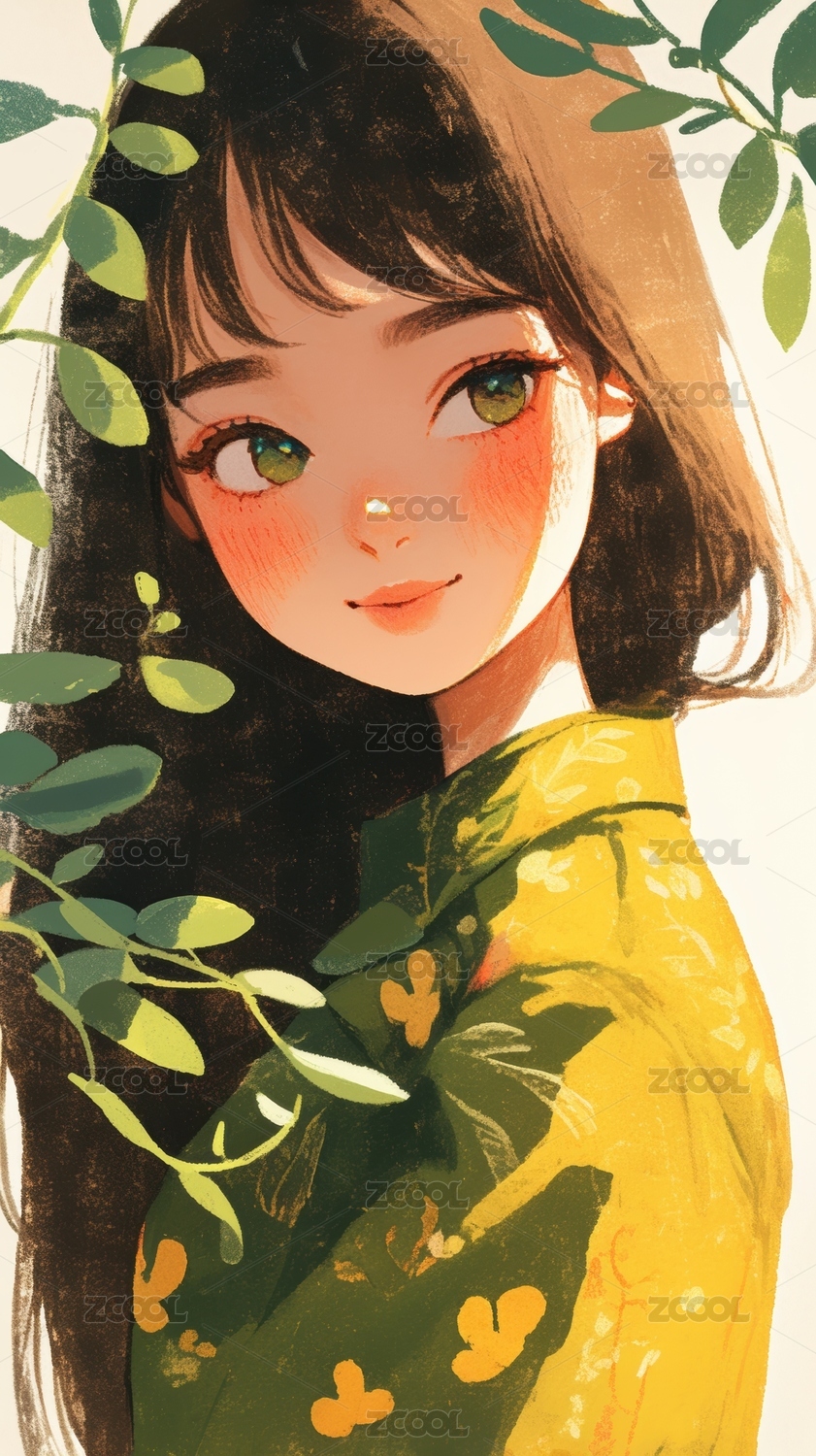 绿叶环绕的少女