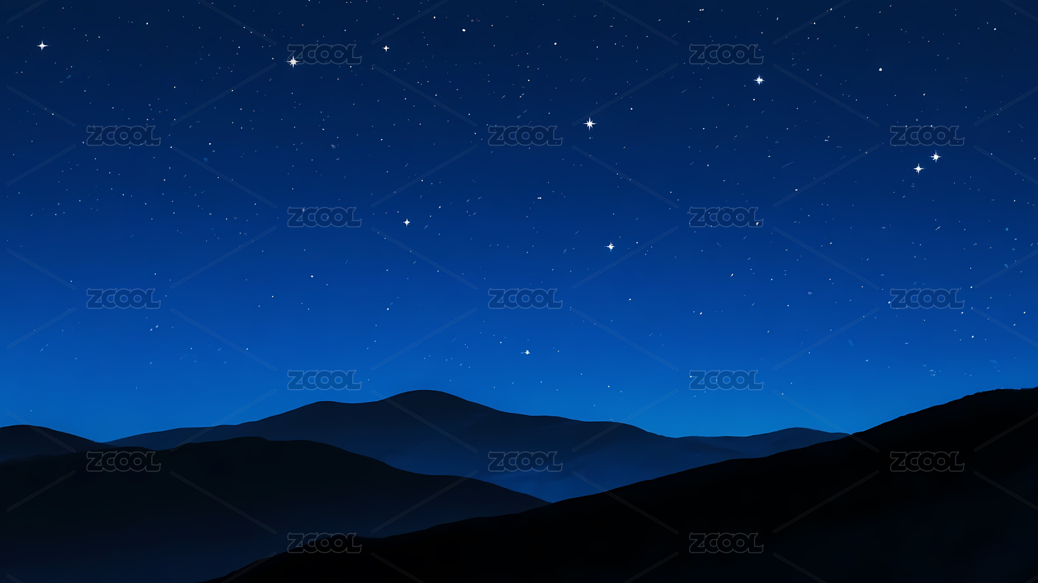 深蓝,夜空,星星,宁静,自然,轮廓,山脉,暗色,风景,孤寂