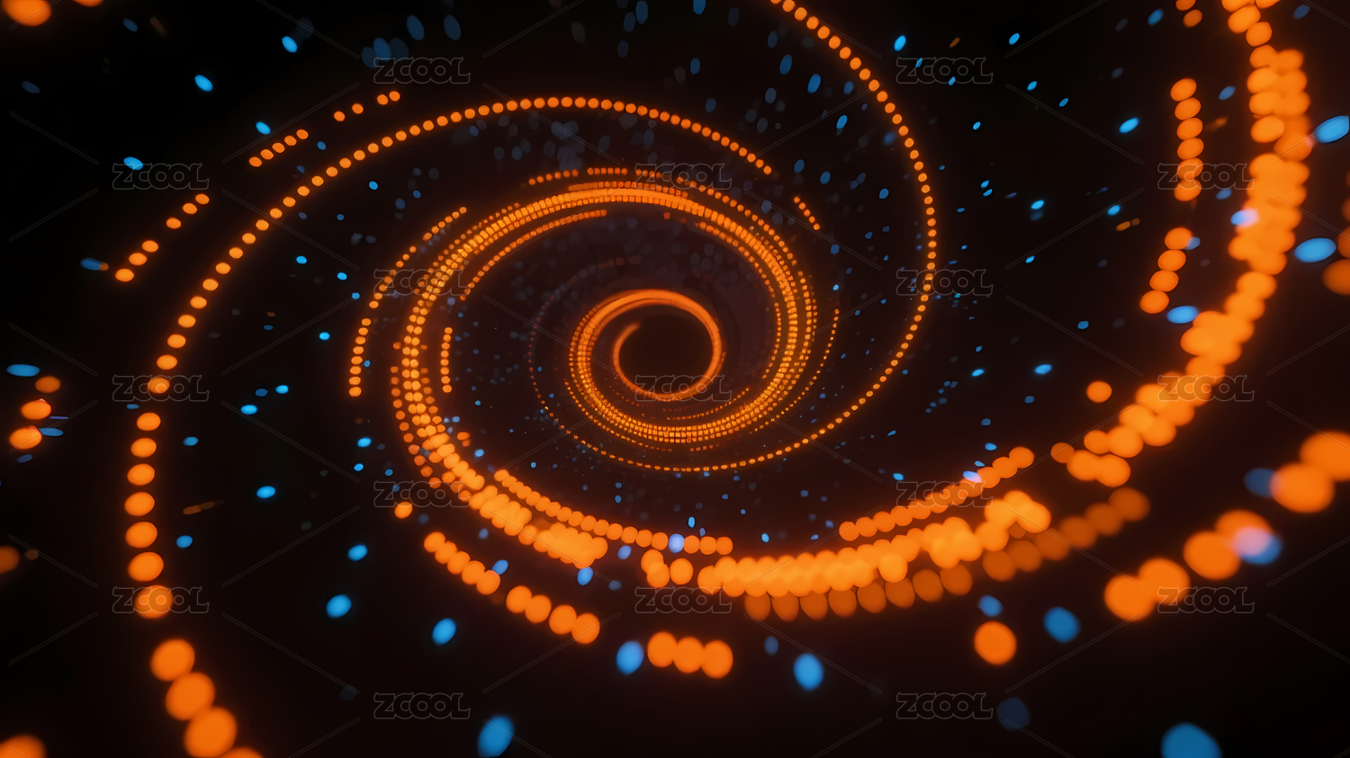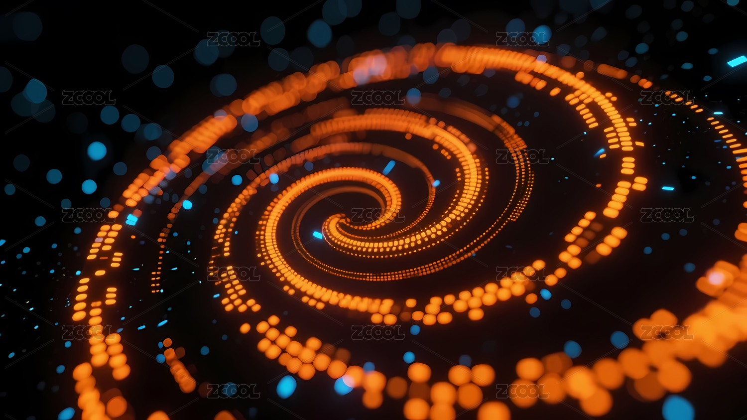 蓝色,科技,橙色,光点,现代,深色,明亮,螺旋,动态,旋转