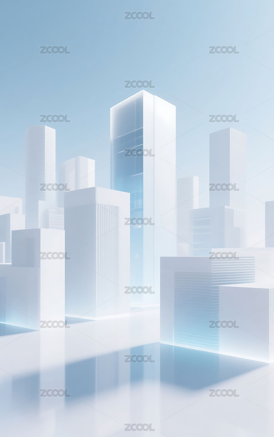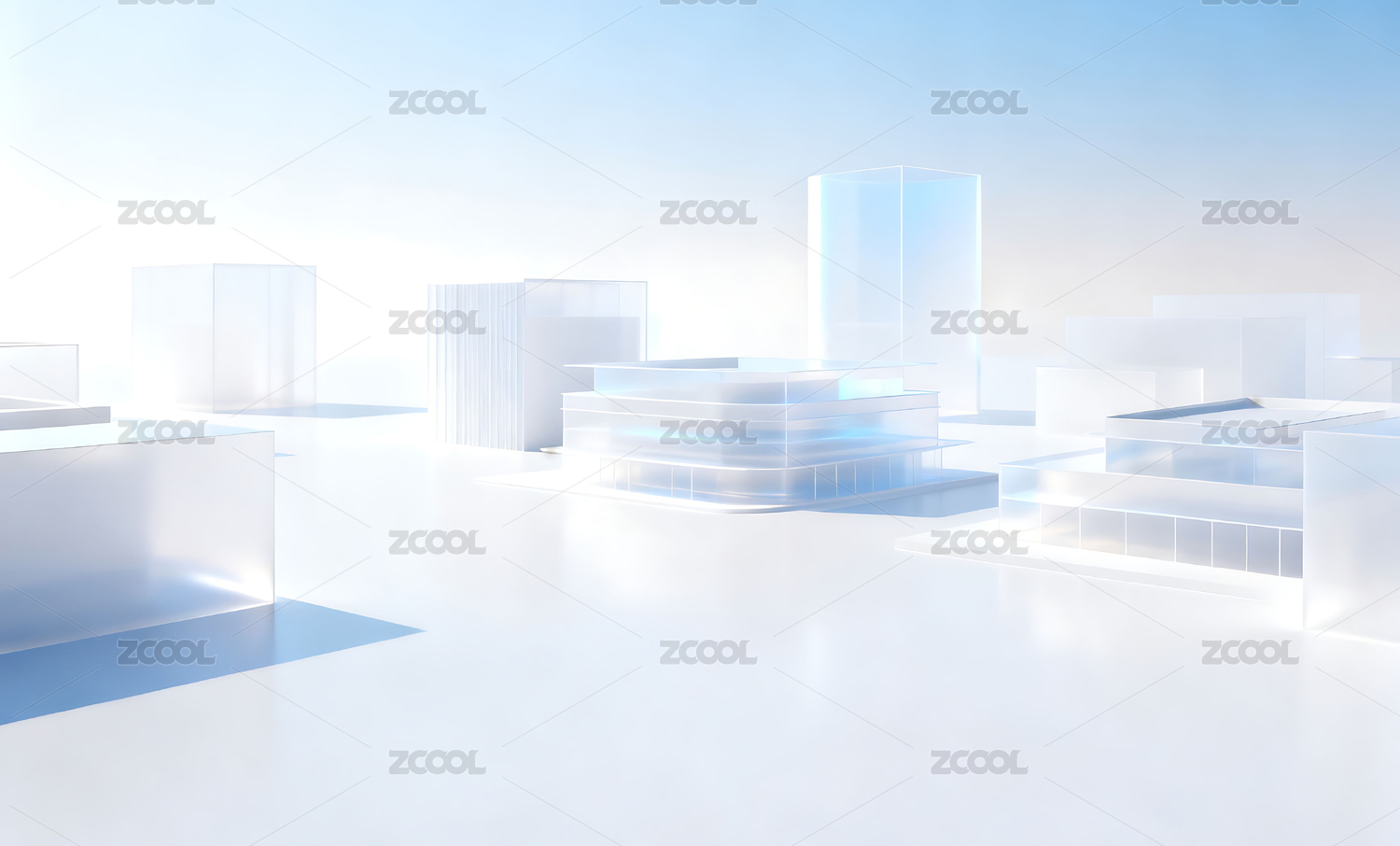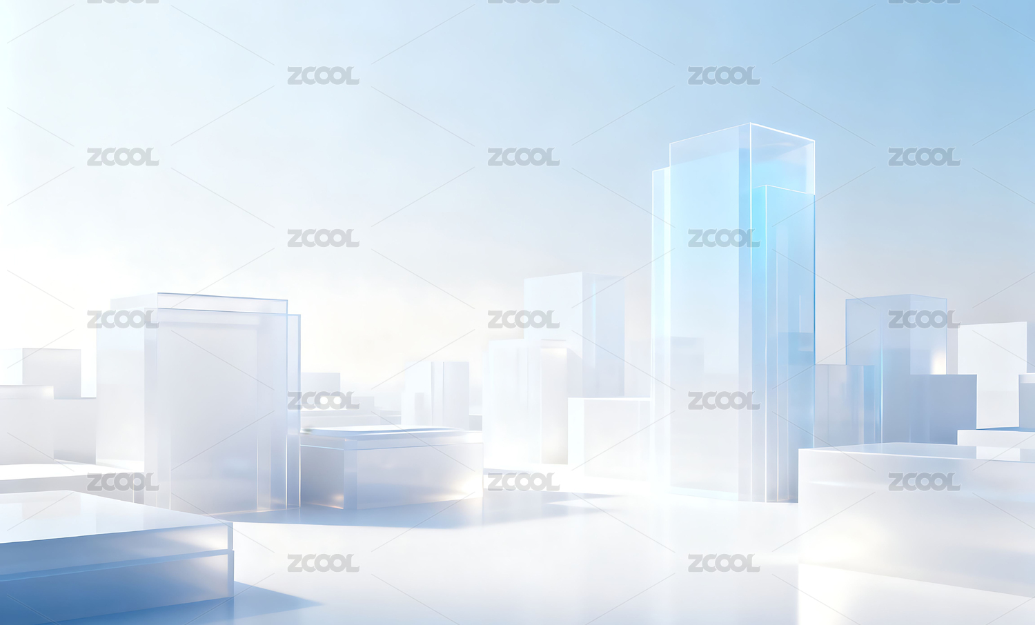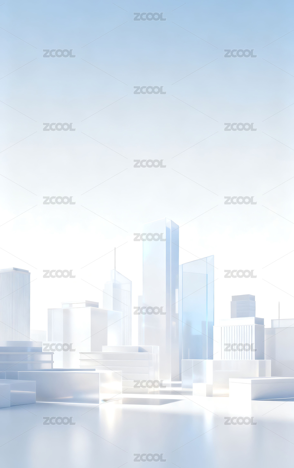 浅蓝色几何玻璃城市建筑背景