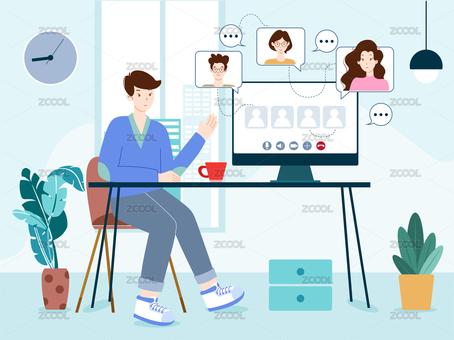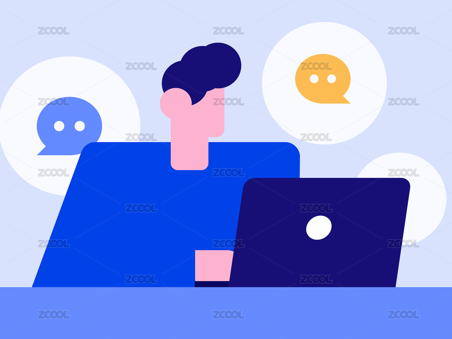 在办公桌边使用电脑办公聊天加班的白领矢量