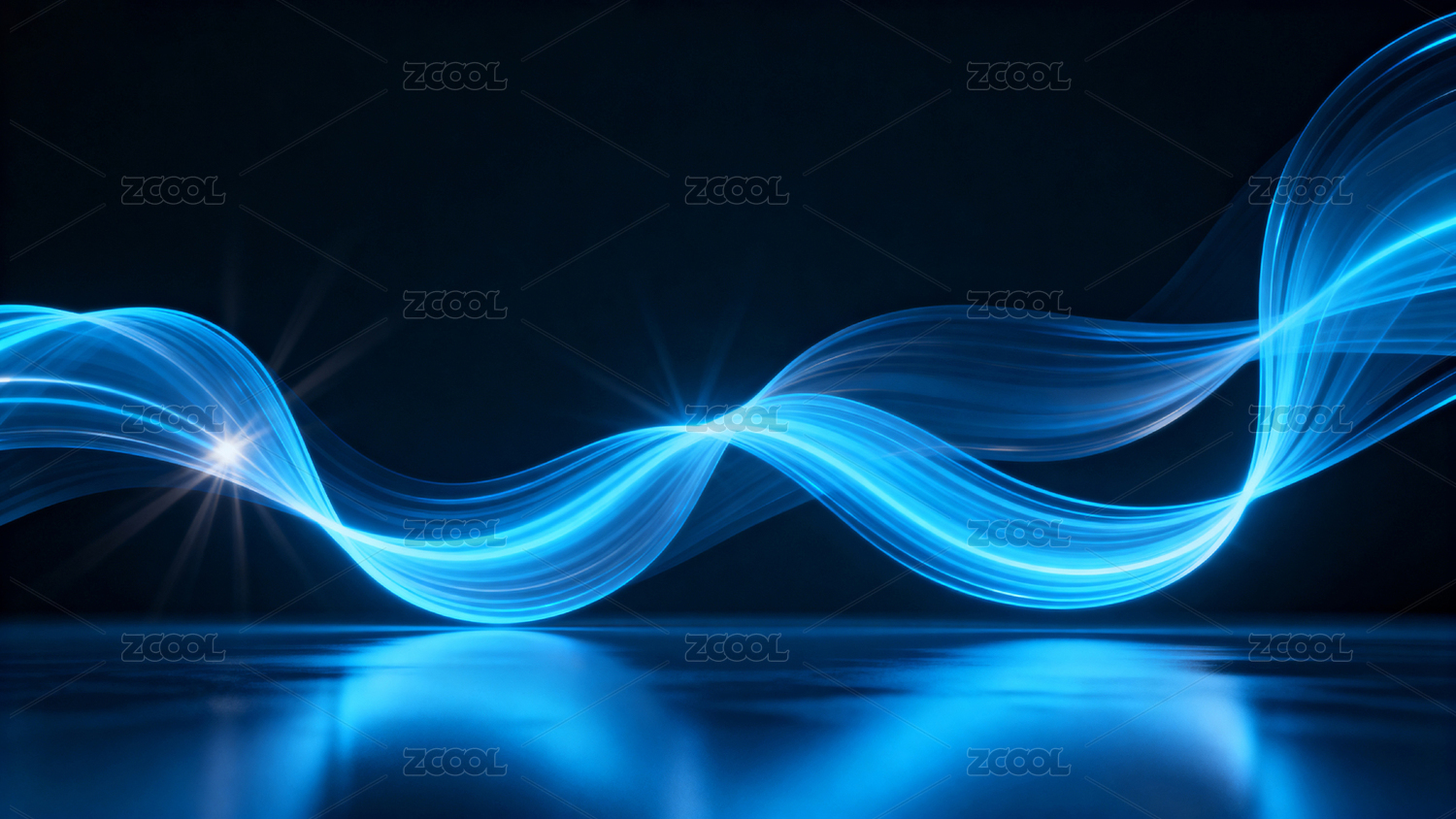蓝色光带映衬深蓝背景