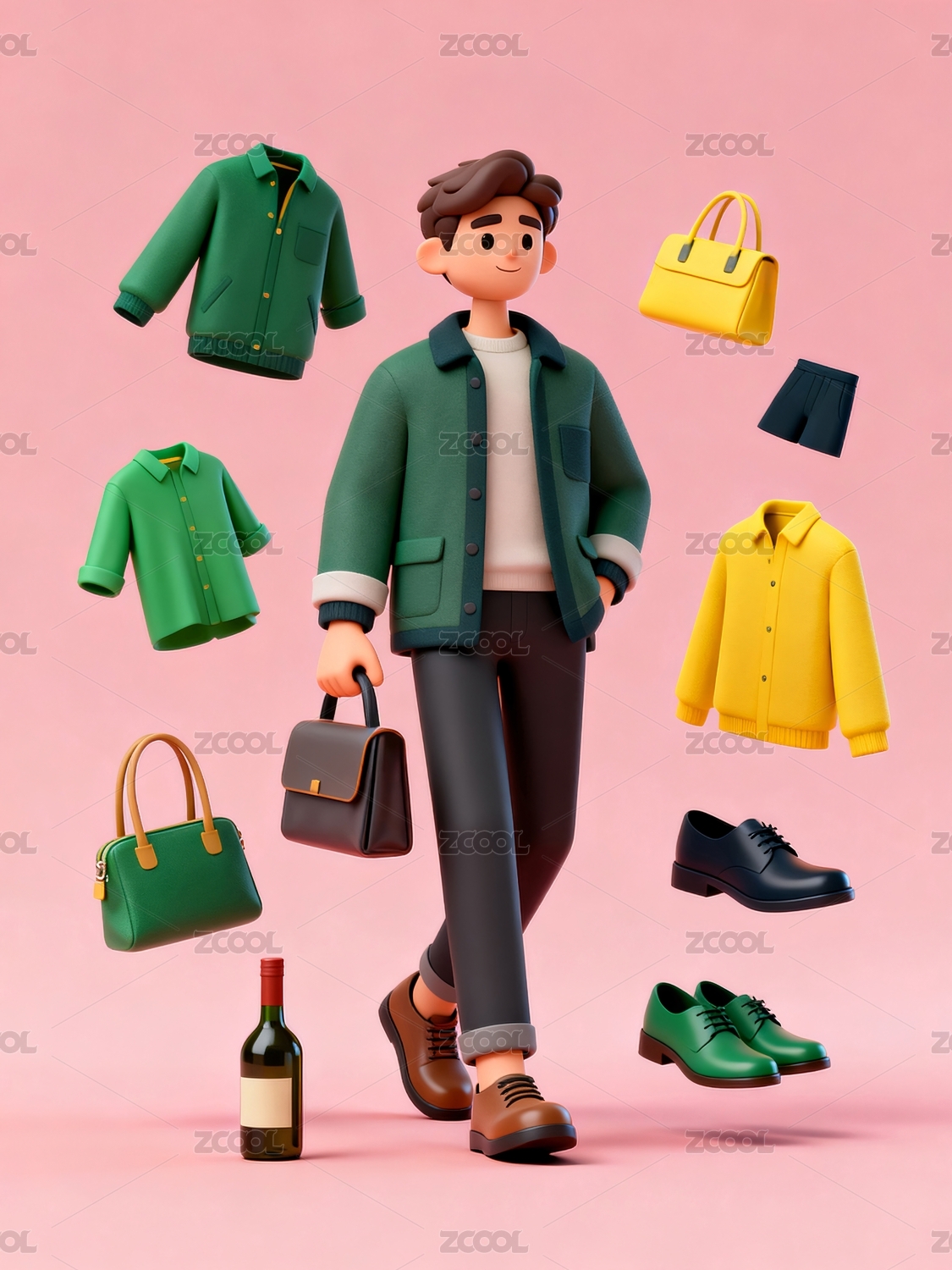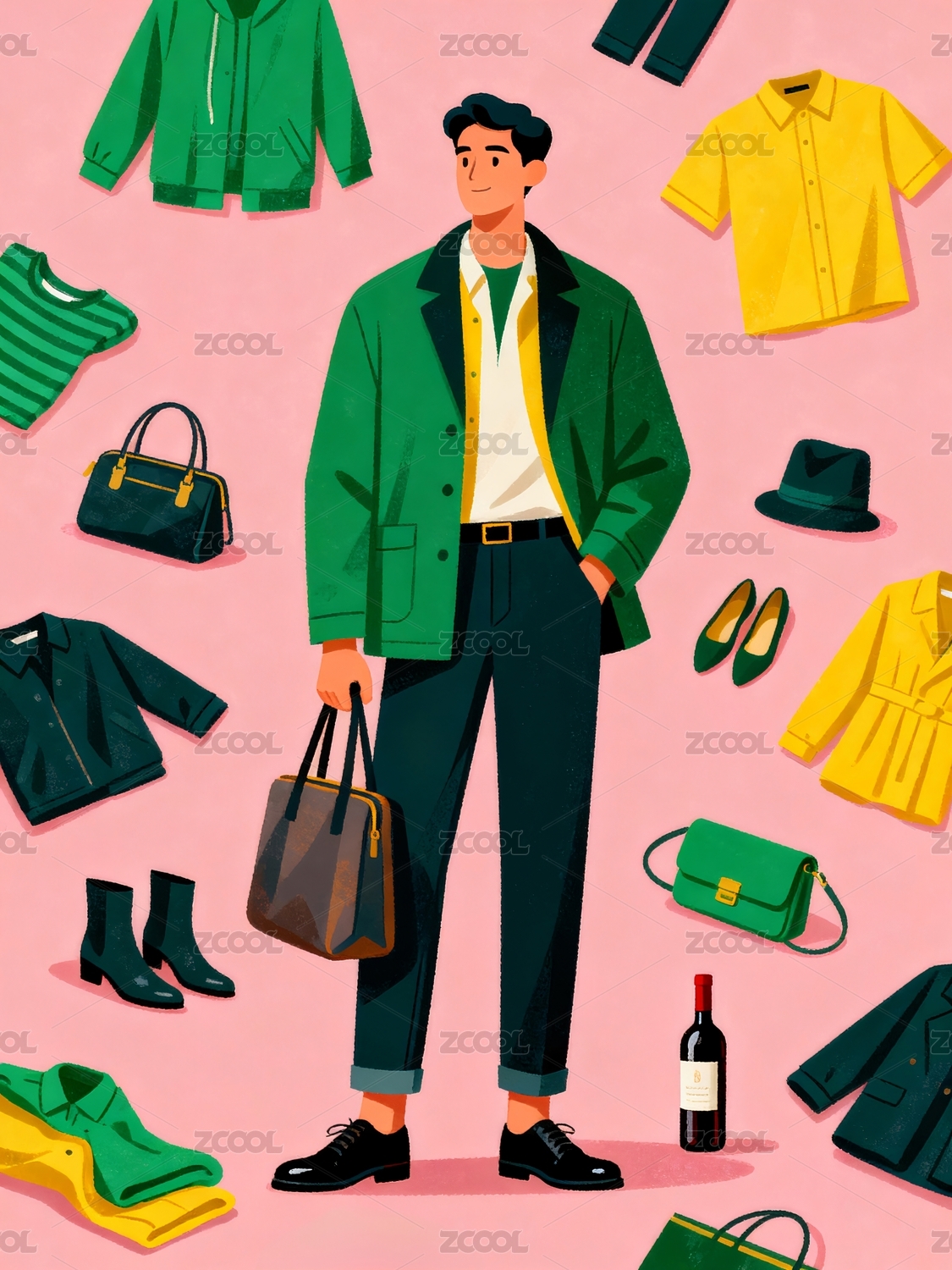 外套,鞋子,包包,男士,绿色,黄色,棕色,白色,服装,休闲