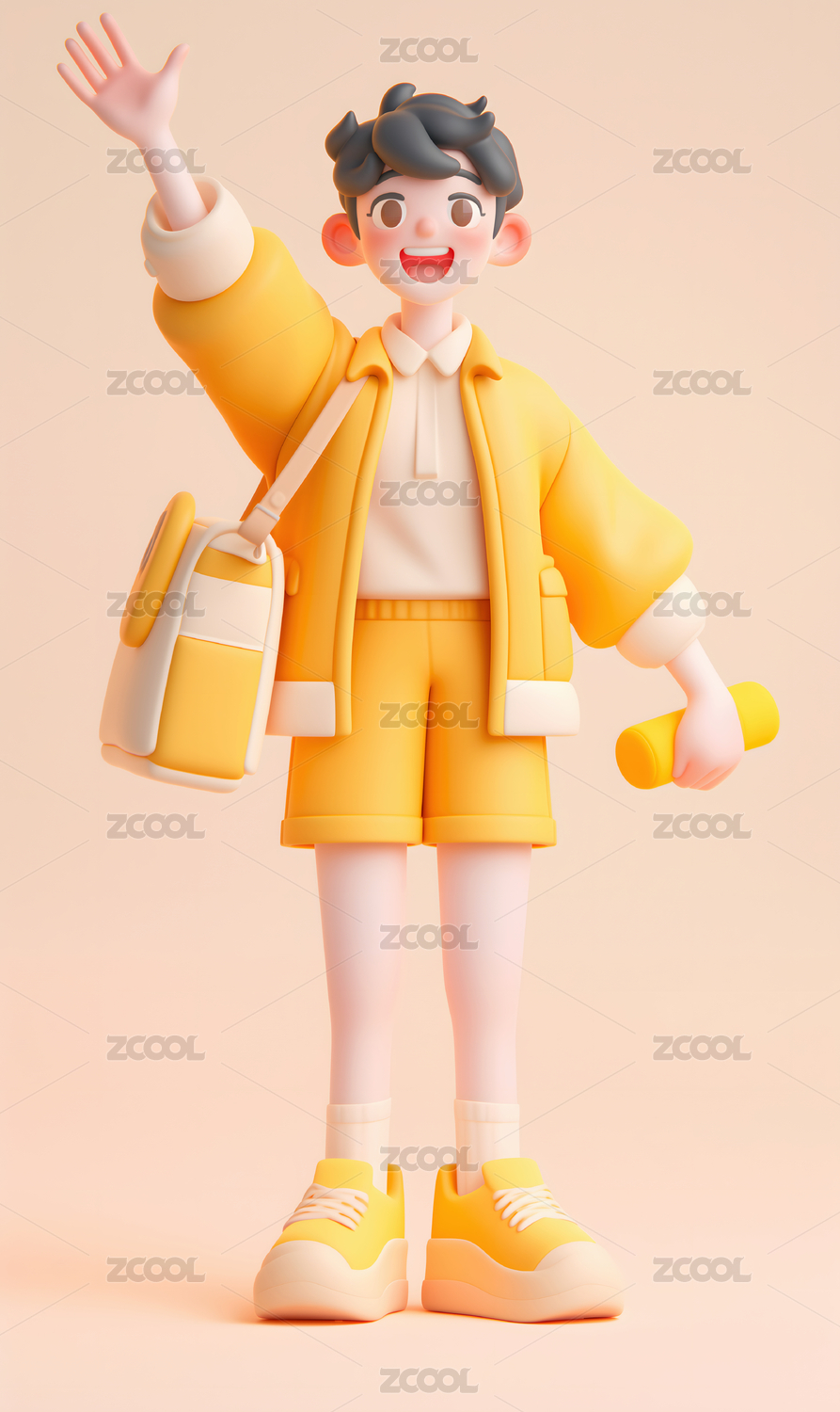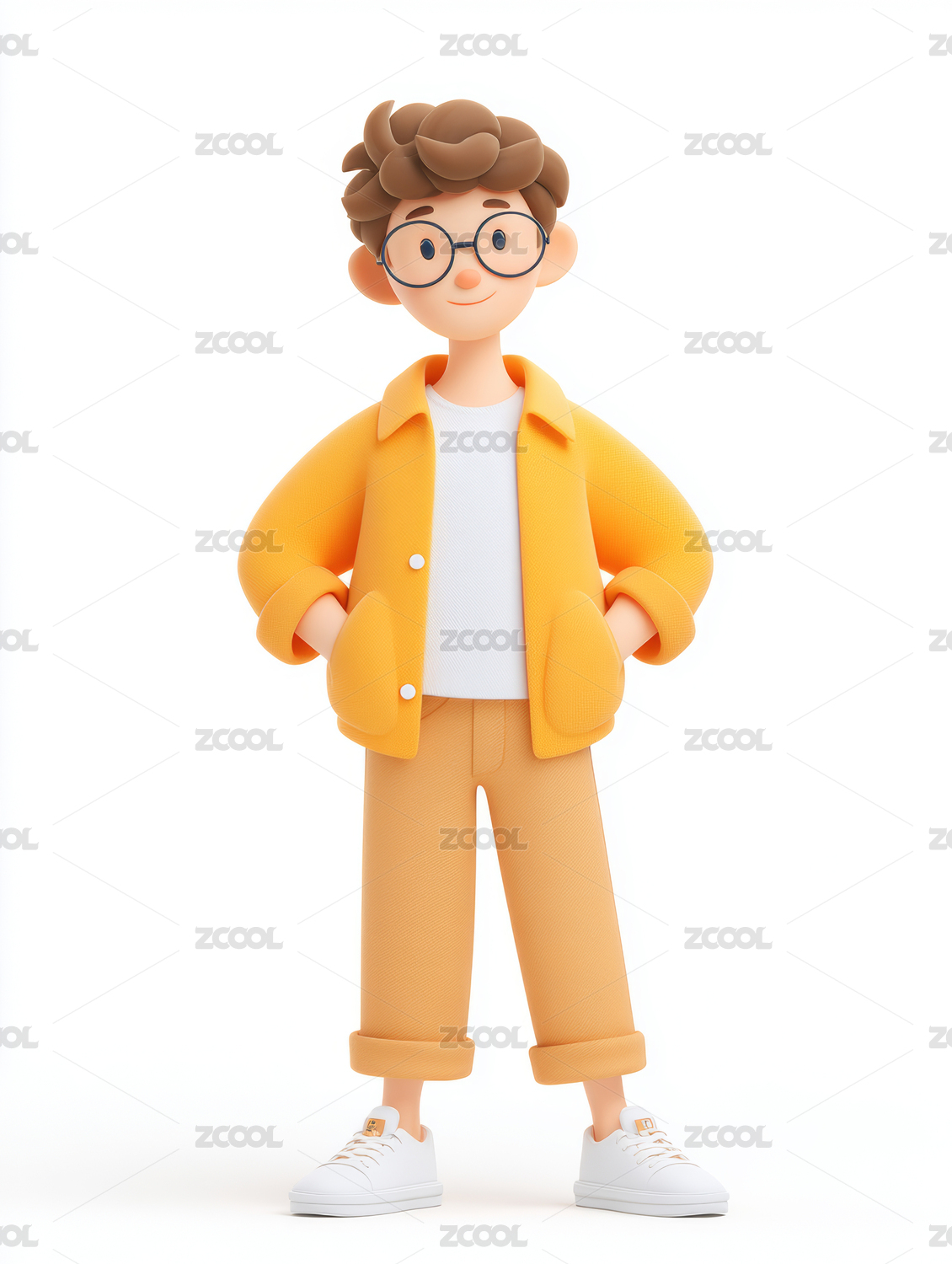 3D渲染可爱卡通戴眼镜的男孩人物插画