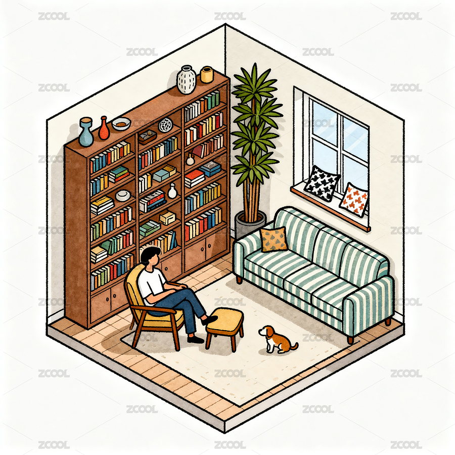 窗户,人物,灯光,室内,房间,柜子,书本,地毯,家具,木质