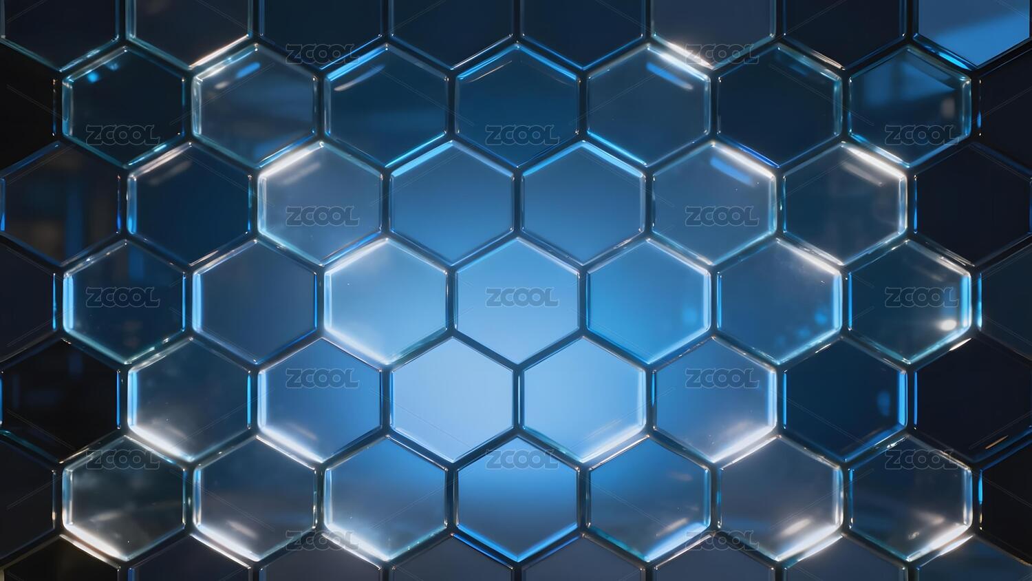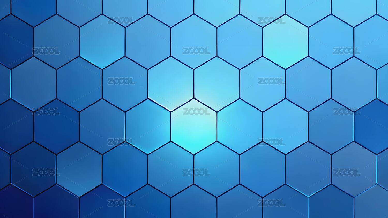 蓝色发光六边形网格背景