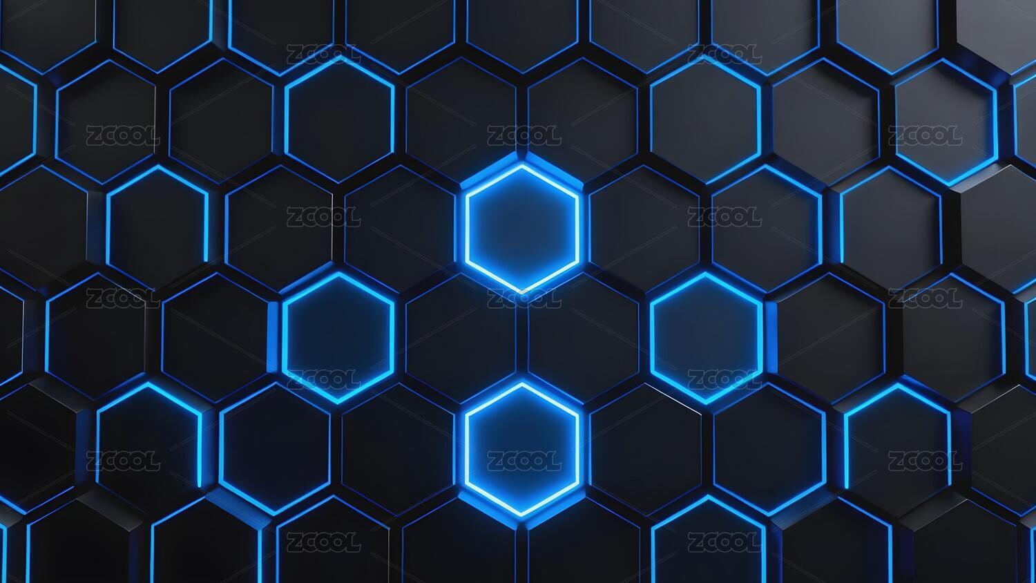 蓝色发光六边形网格图案