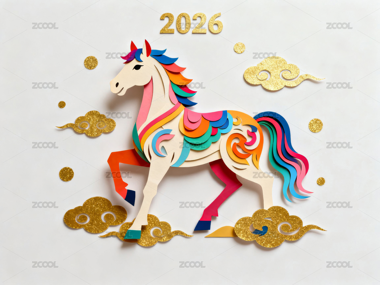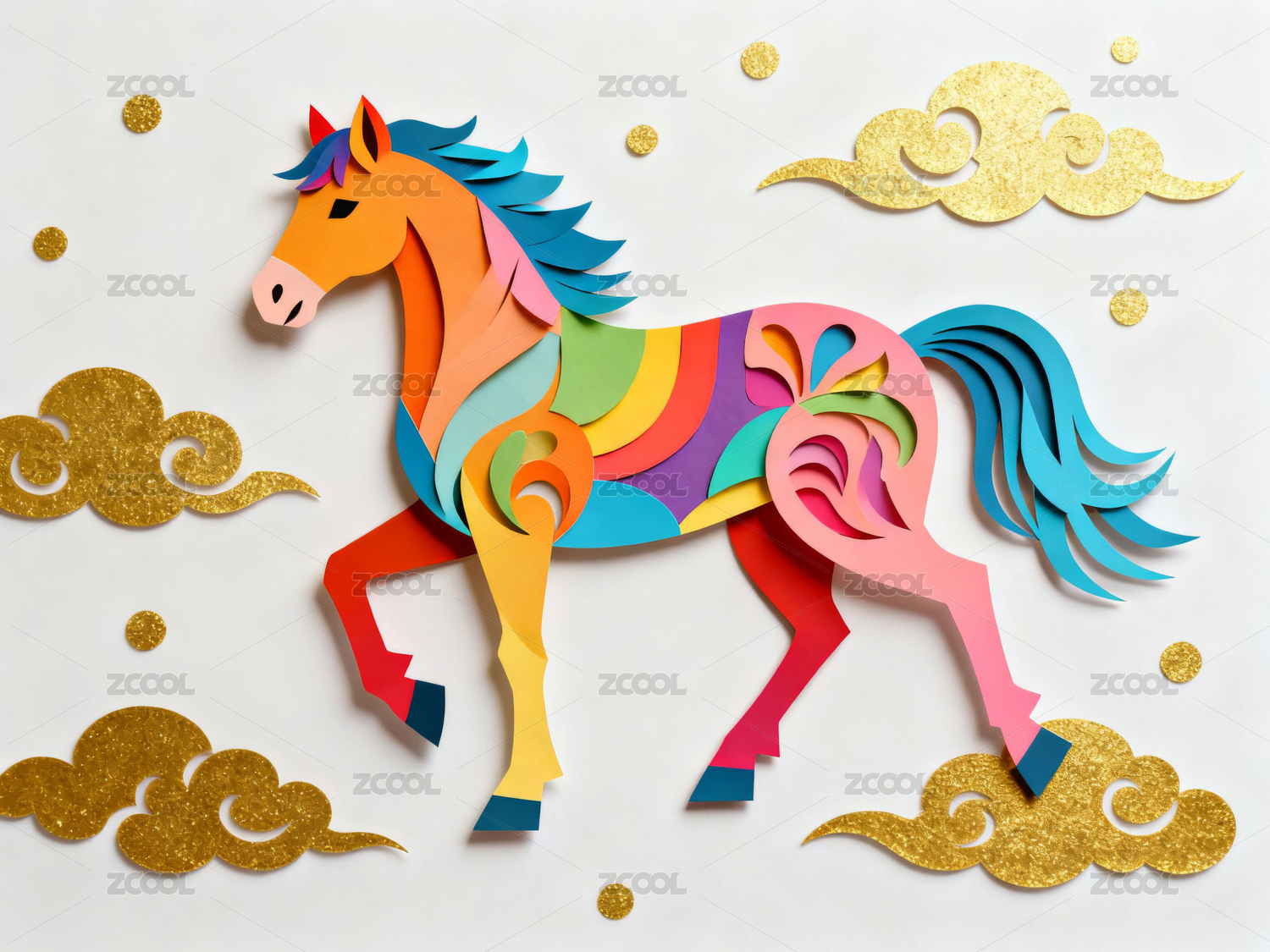 马,剪纸,20,26,春节,彩绘,云朵,金色,生肖,艺术
