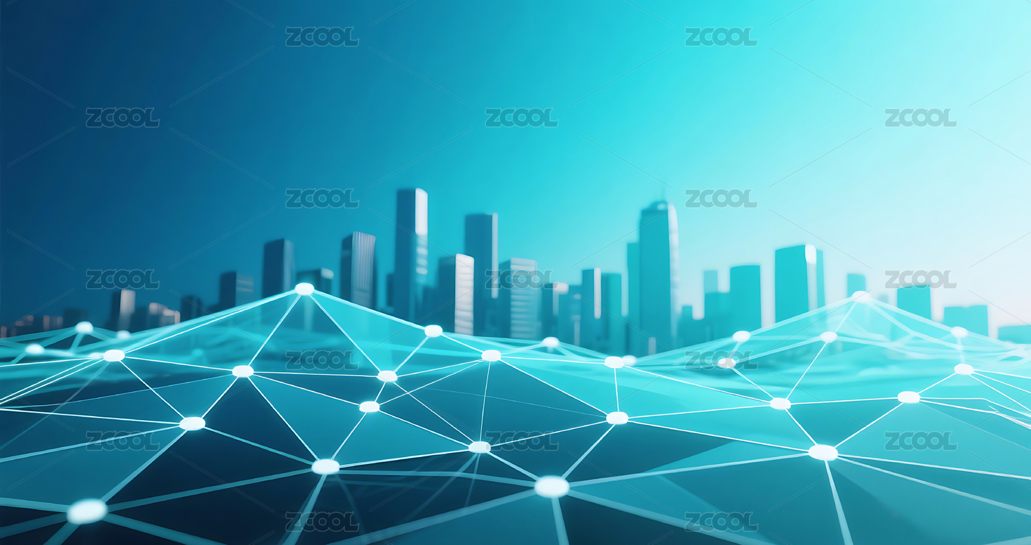 蓝绿色网络空间网格线条城市建筑背景